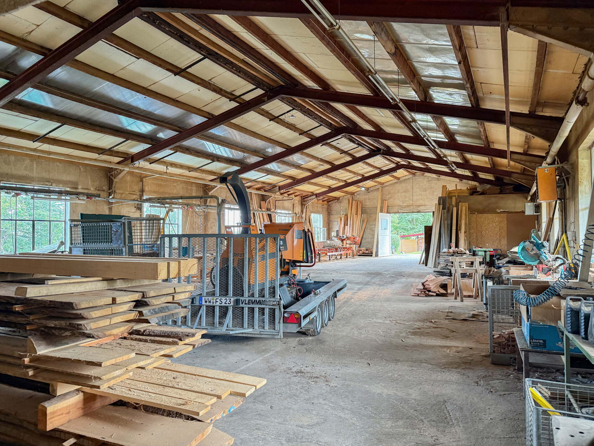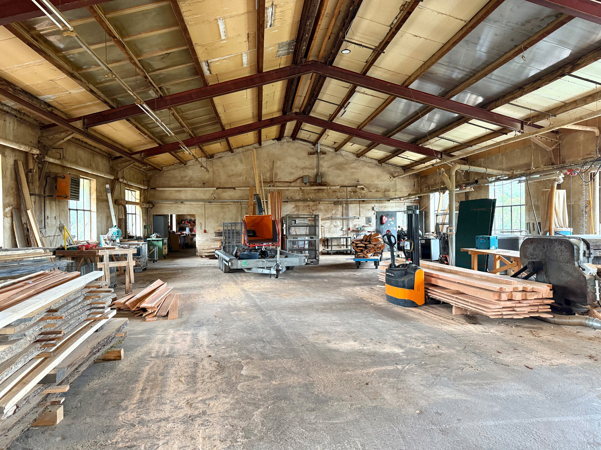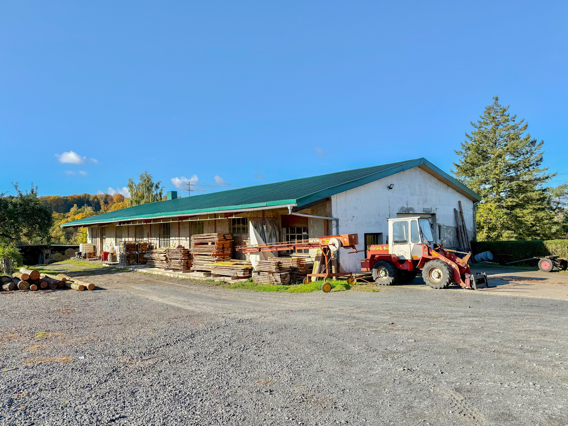 Diese massiv errichtete Gewerbehalle verfügt über eine überdachte Holzlagerfläche von 48 m², ein Schwingtor mit 3 m Höhe und eine Hallenhöhe von 6 m, wodurch auch das Befahren mit größeren Fahrzeugen möglich ist. Zusätzlich steht ein Lagerplatz von ca. 1.000 m² zur Verfügung. Im Erdgeschoss befindet sich ein separates Büro, ideal geeignet, um Kunden zu empfangen. Das Kellergeschoss ist mit einem Aufenthaltsraum für Mitarbeiter, einem Wasch – und Umkleideraum, sowie sanitären Anlagen ausgestattet. Pkw-Stellplätze stehen direkt vor dem Objekt bereit. Aktuell ist die Nutzung als Holzverarbeitungsbetrieb genehmigt. Weitere Nutzungsformen sind über eine Bauvoranfrage über die Kreisverwaltung Montabaur abzuklären. Die Kaution beträgt zwei Nettokaltmieten. Zur Monatsmiete kommt zusätzlich die gesetzliche Umsatzsteuer hinzu (2.142 € inkl. USt.)Ausstattung