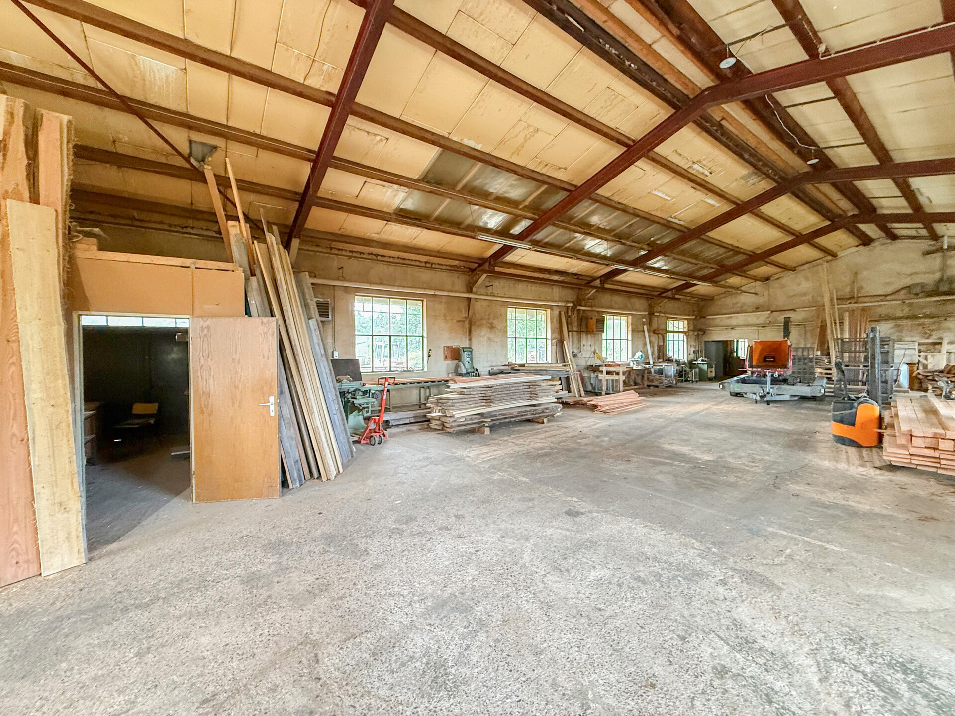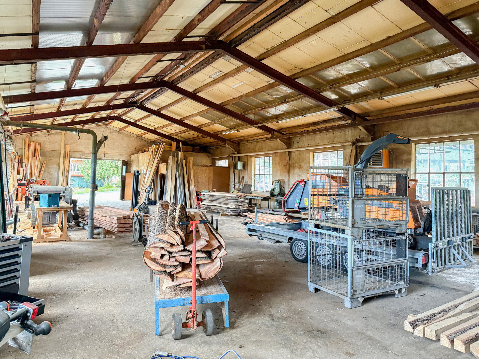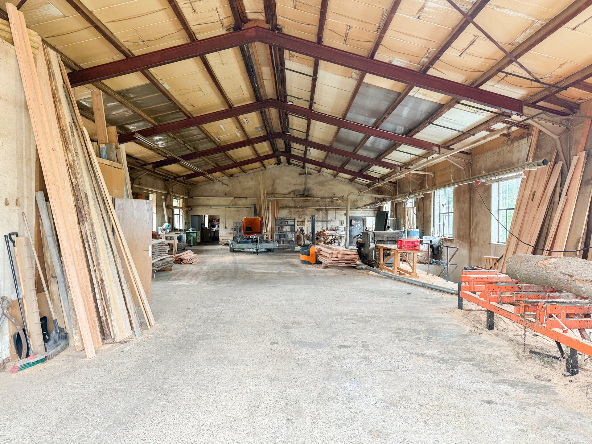 Diese massiv errichtete Gewerbehalle verfügt über eine überdachte Holzlagerfläche von 48 m², ein Schwingtor mit 3 m Höhe und eine Hallenhöhe von 6 m, wodurch auch das Befahren mit größeren Fahrzeugen möglich ist. Zusätzlich steht ein Lagerplatz von ca. 1.000 m² zur Verfügung. Im Erdgeschoss befindet sich ein separates Büro, ideal geeignet, um Kunden zu empfangen. Das Kellergeschoss ist mit einem Aufenthaltsraum für Mitarbeiter, einem Wasch – und Umkleideraum, sowie sanitären Anlagen ausgestattet. Pkw-Stellplätze stehen direkt vor dem Objekt bereit. Aktuell ist die Nutzung als Holzverarbeitungsbetrieb genehmigt. Weitere Nutzungsformen sind über eine Bauvoranfrage über die Kreisverwaltung Montabaur abzuklären. Die Kaution beträgt zwei Nettokaltmieten. Zur Monatsmiete kommt zusätzlich die gesetzliche Umsatzsteuer hinzu (2.142 € inkl. USt.)Ausstattung