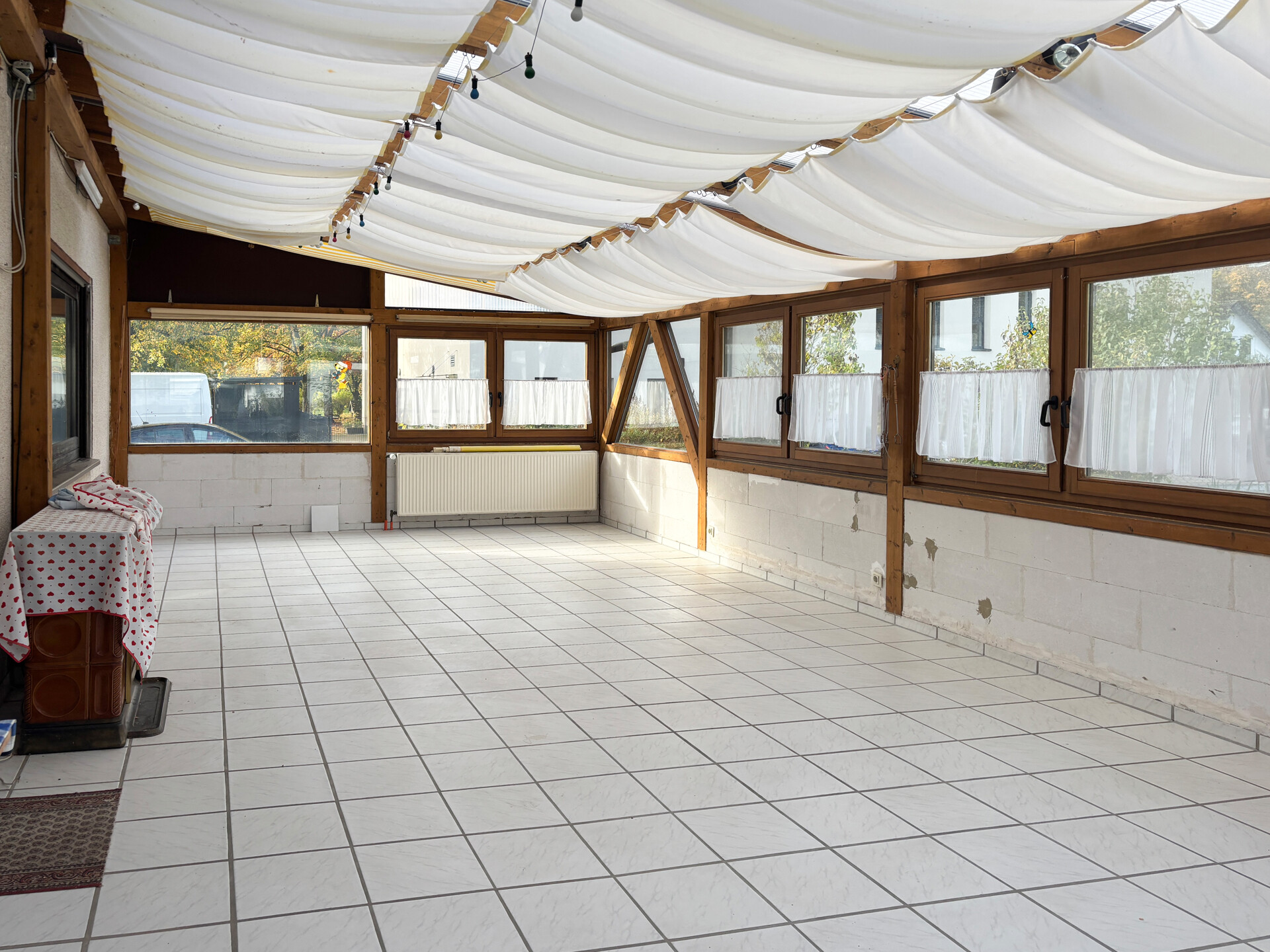 Diese Immobilie wurde ca. im Jahr 1975 in massiver Bauweise auf einem ca. 609 m² großen Grundstück errichtet und bietet vielseitige Nutzungsmöglichkeiten. Das Einfamilienhaus verfügt über eine gut durchdachte Raumaufteilung mit einer Wohnfläche von ca. 115 m², verteilt auf das Erd- und Obergeschoss mit insgesamt fünf Zimmern. Im Erdgeschoss befinden sich ein Gäste-WC, ein großzügiges Wohnzimmer, ein Esszimmer mit Zugang zum geräumigen Wintergarten sowie zum Garten und eine Küche. Das Obergeschoss umfasst zwei Schlafzimmer, ein weiteres, kleineres Zimmer sowie ein Badezimmer. Zusätzlichen Stauraum bietet das Untergeschoss, in dem sich unter anderem zwei ausgebaute Kellerräume und ein weiteres WC befinden. Der pflegeleichte Garten lädt mit seinem idyllischen Teich zum Entspannen und Verweilen ein. Hier genießen Sie erholsame Stunden, ohne großen Arbeitsaufwand betreiben zu müssen. Das Objekt befindet sich in einem renovierungsbedürftigen Zustand, bietet jedoch erhebliches Potenzial zur individuellen Gestaltung und Wertsteigerung.Ausstattung