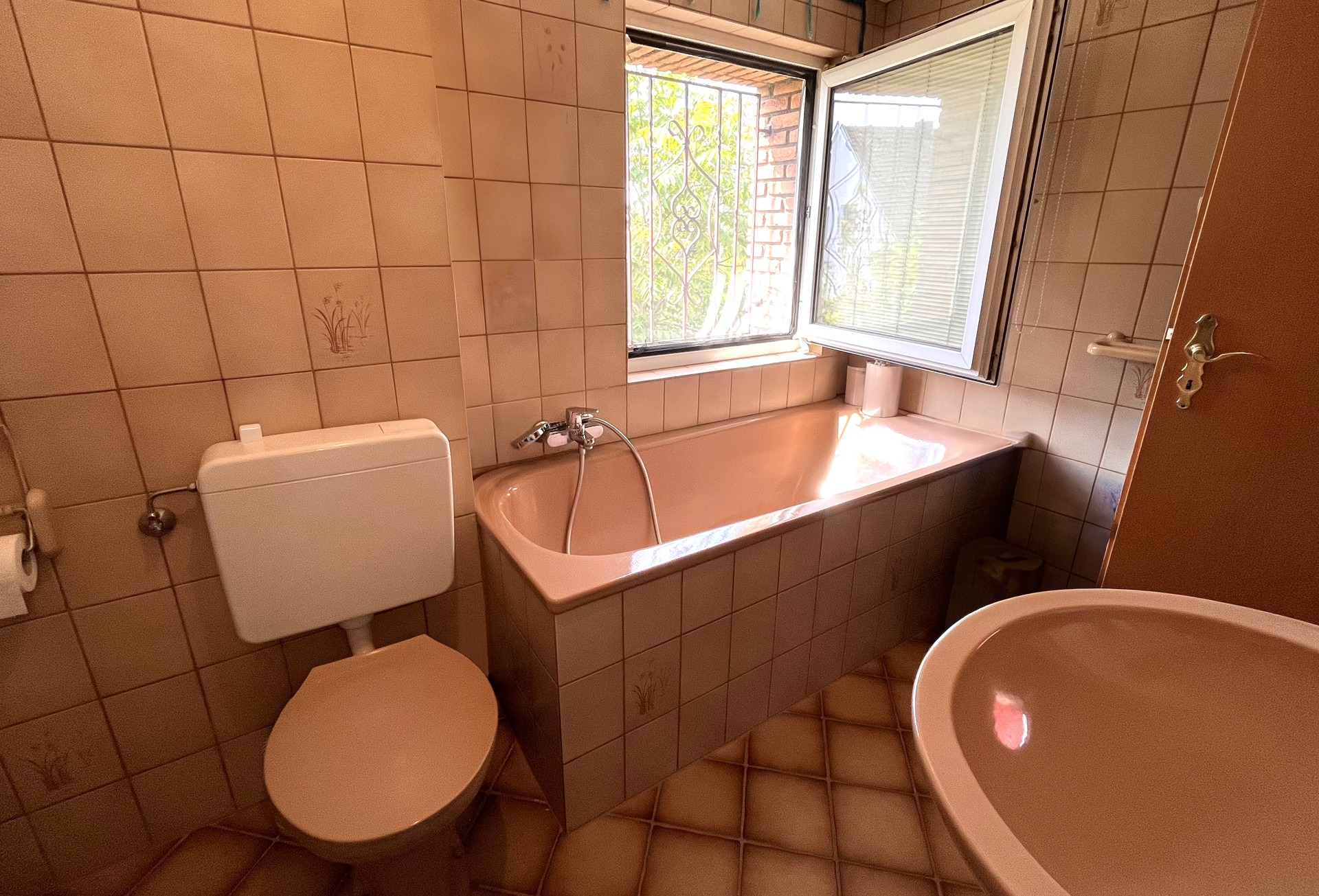 In einer ruhigen und dennoch zentralen Wohnlage von Sankt Augustin befindet sich dieses freistehende Einfamilienhaus, das seinen Ursprung im Jahr 1958 hat. Das großzügige Grundstück bietet idyllische Ruhe und Entfaltungsmöglichkeiten für die ganze Familie. Das Haus ist komplett unterkellert, inklusive einer praktischen Kelleraußentreppe. Mitte der 1980er Jahre erfuhr die Immobilie eine umfassende Modernisierung, bei der die Fassade verklinkert, das Badezimmer erneuert und die Fensteranlagen ausgetauscht wurden. Zudem ist das Haus mit Rollläden ausgestattet, die vorwiegend vorhanden sind. Die Gasheizung der renommierten Marke Vaillant, die auch die Warmwasserversorgung übernimmt, wurde 2007 auf den neuesten Stand gebracht. Der Eingangsbereich des Hauses führt Sie direkt zur Diele, die Zugang zum großzügigen Gäste-WC bietet, das ausreichend Platz für eine Dusche bereithält. Die Küche ist sowohl von der Diele als auch vom Esszimmer aus zugänglich und bietet genug Raum für einen Esstisch. Das behagliche Wohnzimmer ist ebenfalls direkt mit dem Esszimmer verbunden. Von dort aus erreichen Sie die weitläufige Terrasse, die mit ihrer Treppe direkt in den wunderschönen, großen Garten führt. Im Obergeschoss gelangen Sie über eine Wendeltreppe aus dem Wohnzimmer. Diese Etage bietet ein geräumiges, lichtdurchflutetes Schlafzimmer sowie ein großzügiges Wannenbad mit Fenster. Die Diele im Obergeschoss ist ebenfalls geräumig und vielseitig nutzbar. Ein Tipp: Sollte die Küche ins Esszimmer integriert werden, besteht die Möglichkeit, ein zusätzliches Schlafzimmer im Erdgeschoss einzurichten. Ein Architekt bestätigte zudem mündlich die Möglichkeit, einen Baukörper von ca. 6m x 14m neu zu errichten oder die bestehende Immobilie entsprechend zu erweitern, um zusätzlichen Wohnraum zu schaffen. Diese Immobilie vereint Ruhe und Zentralität und bietet großes Potenzial zur persönlichen Gestaltung. Erleben Sie Ihr neues Zuhause in einer der begehrtesten Lagen von Sankt Augustin.Ausstattung