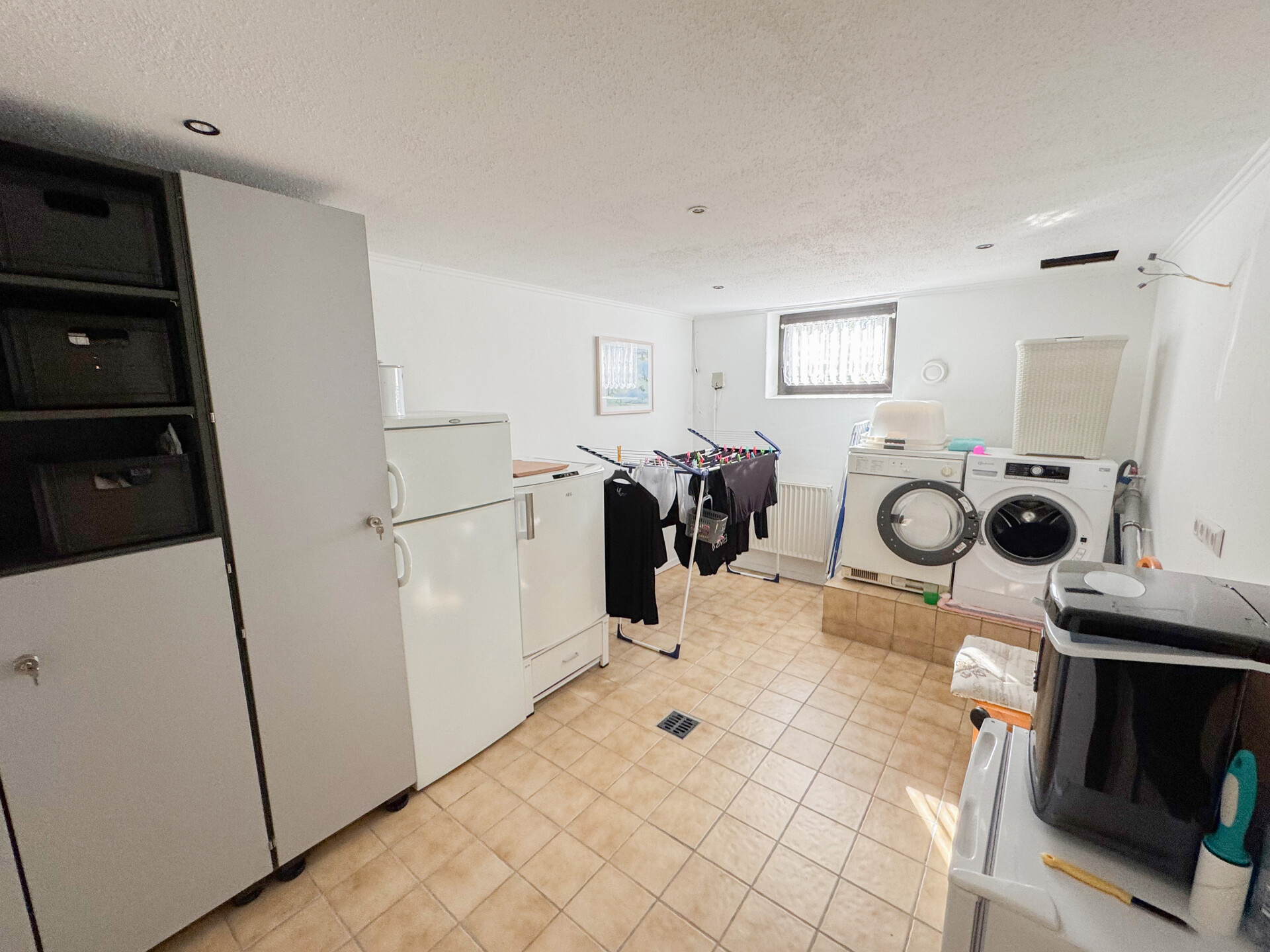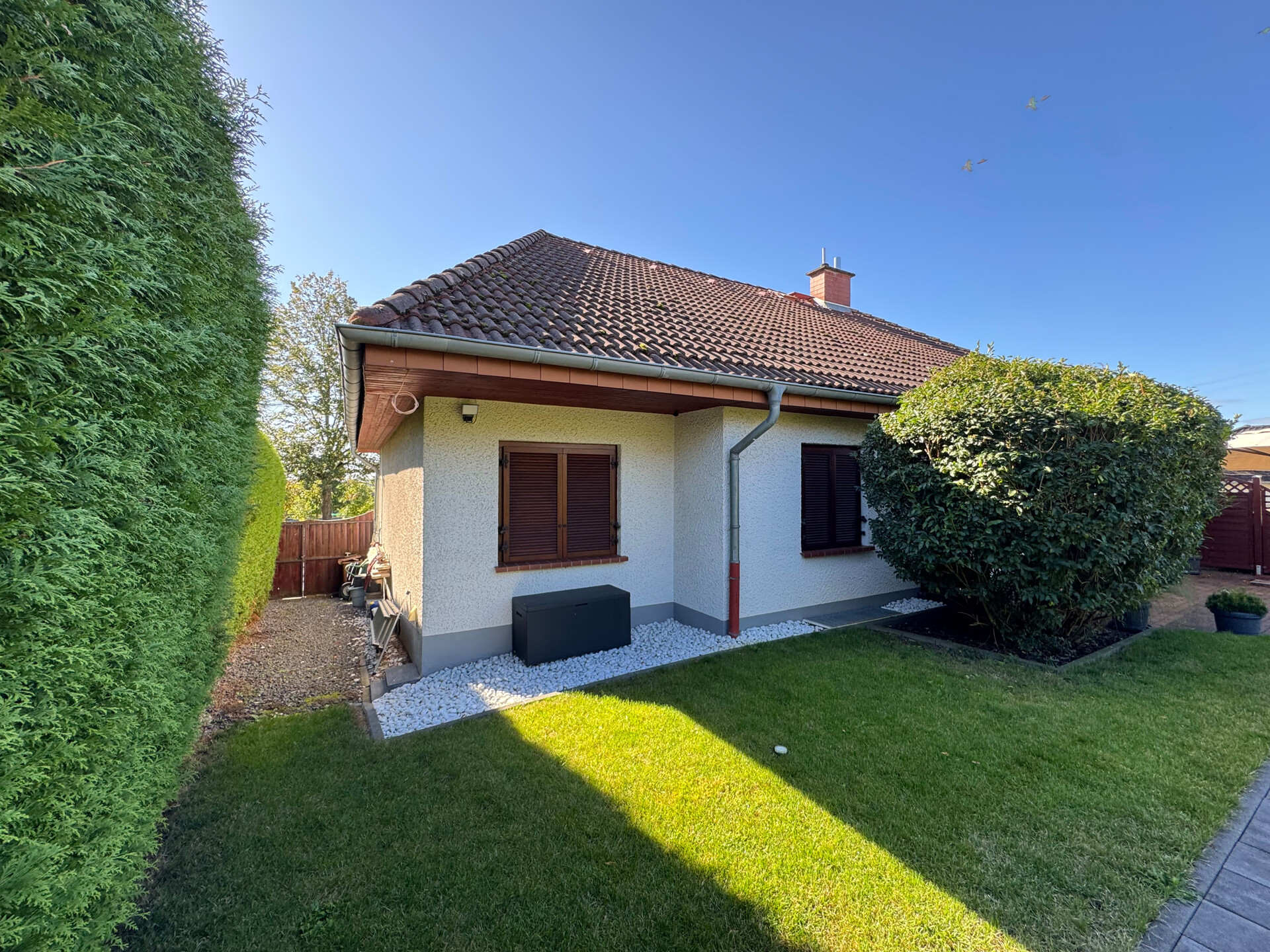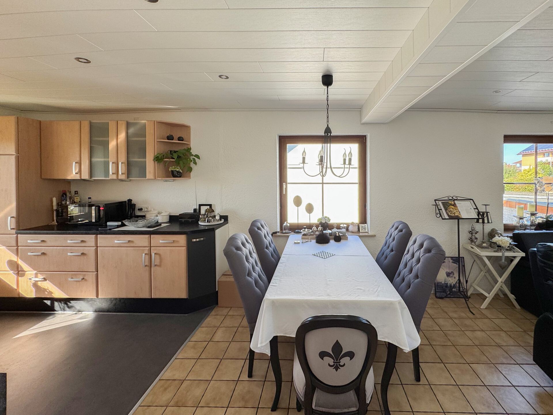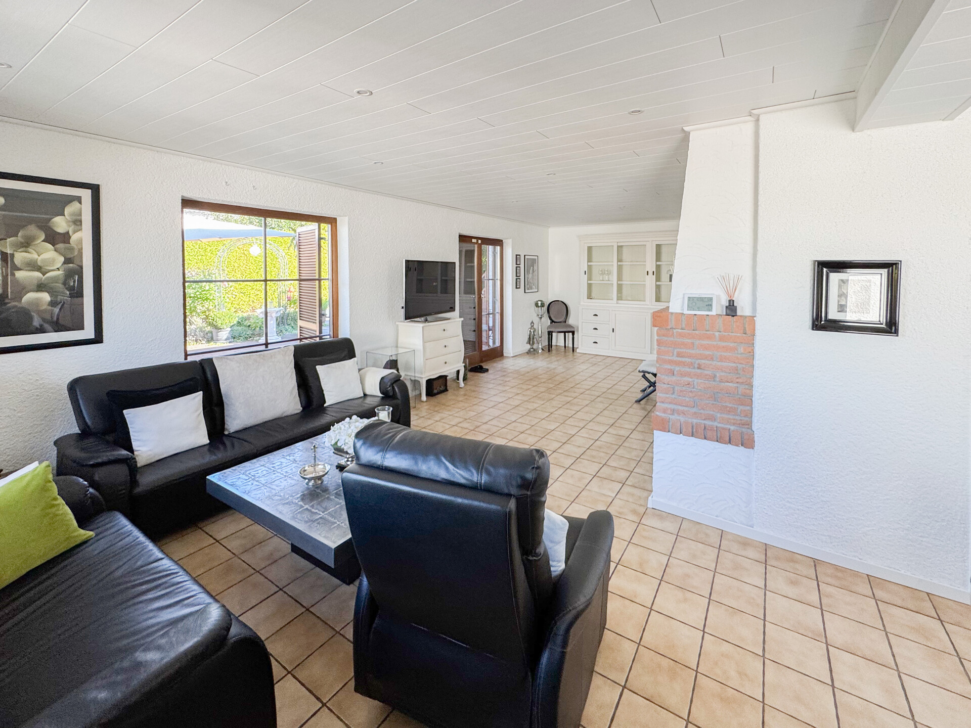 Dieses massive Einfamilienhaus wurde ca. 1990 erbaut und erstreckt sich über eine Etage, wodurch Wohnen auf einer Ebene ermöglicht wird. Die Wohnfläche von ca. 142 m² umfasst ein klimatisiertes Schlafzimmer mit angrenzender Ankleide, ein Büro/Kind, ein Badezimmer sowie Gäste. Der begehbare Kleiderschrank sorgt für Stauraum und Komfort. Die Einbauküche lädt zum Kochen und Verweilen ein. Ergänzend sorgt ein luxuriöser Wellnessbereich mit Sauna und Pool für Entspannung. Im EG befinden sich zudem der Wohnbereich und das Esszimmer mit Zugang zum Garten, sodass Sie nahtlos Innen- und Außenwohnen genießen. Das ca. 592 m² große Grundstück bietet eine tolle Fernsicht. Der gepflegte Garten mit Pool eignet sich hervorragend für gesellige Abende oder ruhige Momente im Freien. Das Haus ist unterkellert und bietet vielseitige Nutzungsmöglichkeiten-neben dem Hobbyraum mit Sauna und Duschbad mit WC stehen zusätzliche Stauraumflächen und Weiteres zur individuellen Nutzung bereit. Das DG bietet zudem Ausbaupotenzial: Raumhöhe und Raumgestaltungsmöglichkeiten ermöglichen eine flexible Erweiterung bei Bedarf, z. B. als zusätzlicher Wohn- oder Arbeitsbereich, Gästezimmer oder Mansardenzugang. Der Hofbereich mit großer Garage sorgt für ausreichend Stellfläche für Ihre PKWs.Ausstattung
