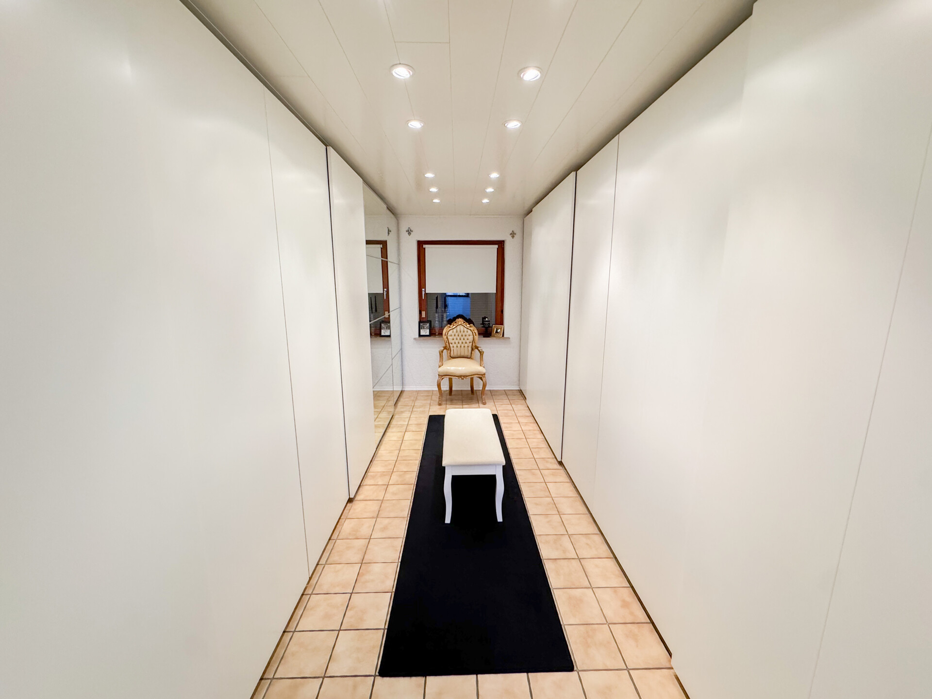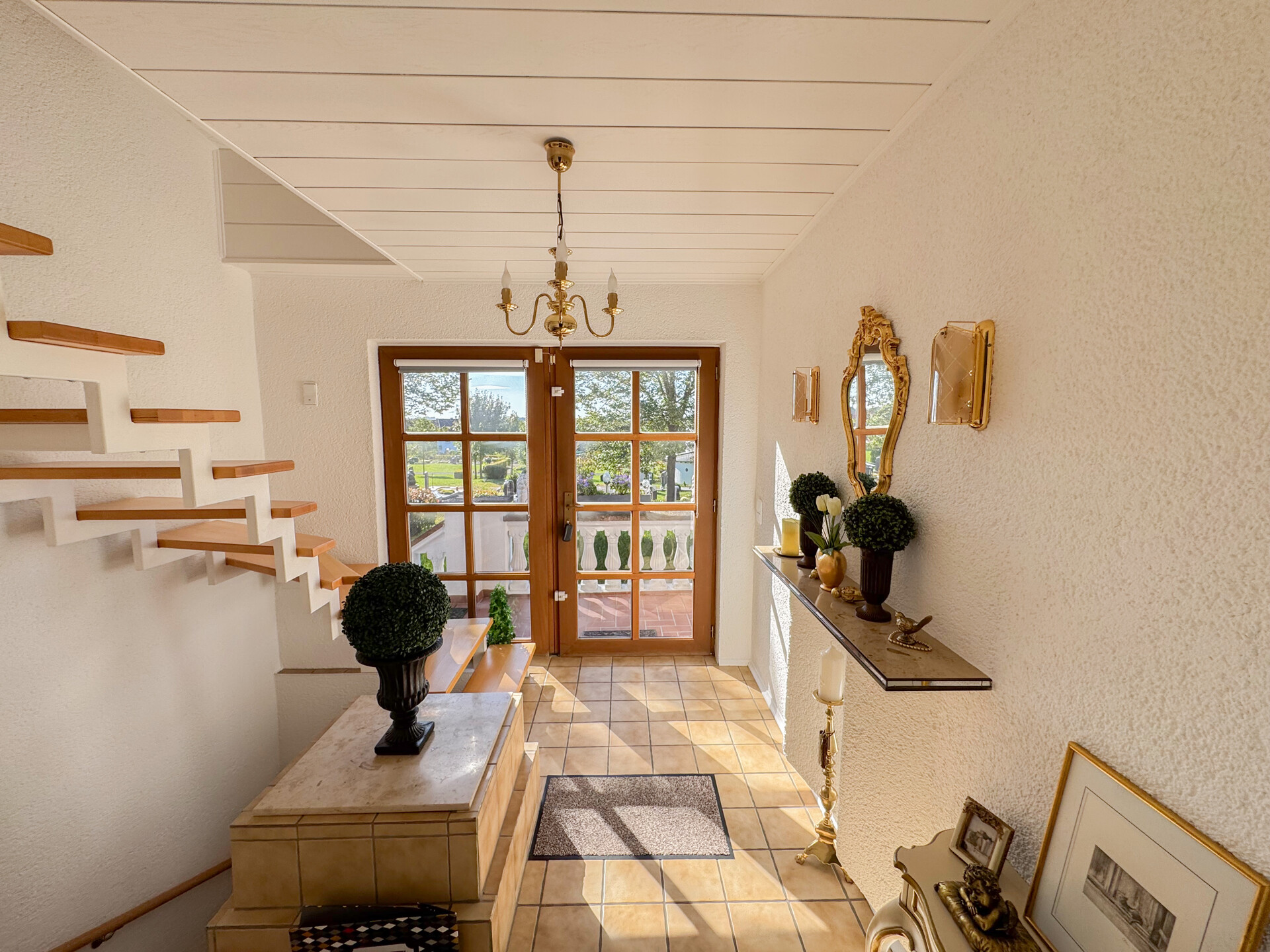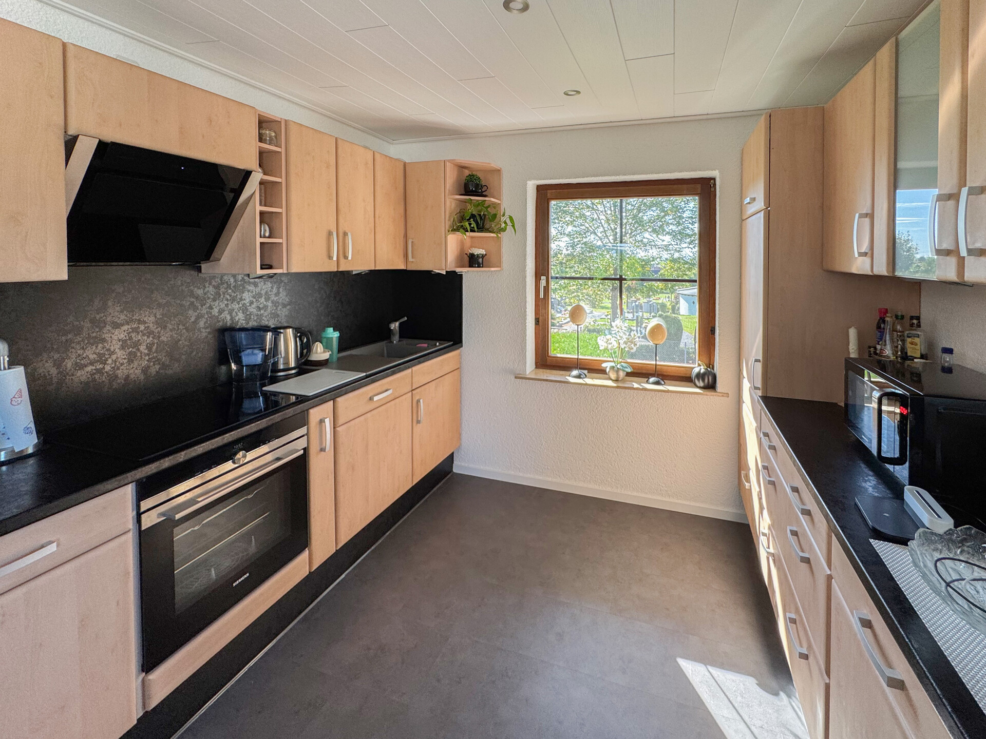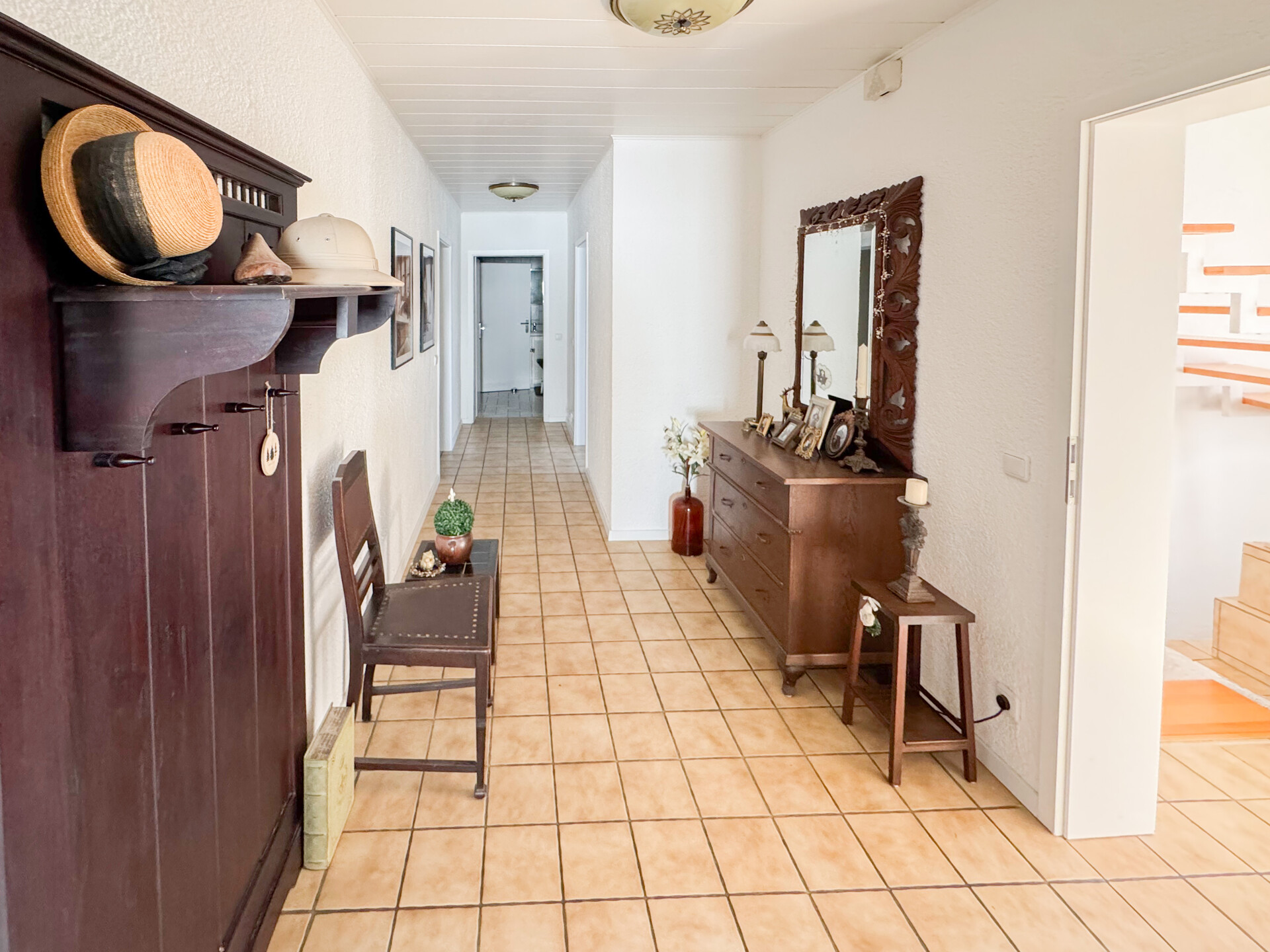 Dieses massive Einfamilienhaus wurde ca. 1990 erbaut und erstreckt sich über eine Etage, wodurch Wohnen auf einer Ebene ermöglicht wird. Die Wohnfläche von ca. 142 m² umfasst ein klimatisiertes Schlafzimmer mit angrenzender Ankleide, ein Büro/Kind, ein Badezimmer sowie Gäste. Der begehbare Kleiderschrank sorgt für Stauraum und Komfort. Die Einbauküche lädt zum Kochen und Verweilen ein. Ergänzend sorgt ein luxuriöser Wellnessbereich mit Sauna und Pool für Entspannung. Im EG befinden sich zudem der Wohnbereich und das Esszimmer mit Zugang zum Garten, sodass Sie nahtlos Innen- und Außenwohnen genießen. Das ca. 592 m² große Grundstück bietet eine tolle Fernsicht. Der gepflegte Garten mit Pool eignet sich hervorragend für gesellige Abende oder ruhige Momente im Freien. Das Haus ist unterkellert und bietet vielseitige Nutzungsmöglichkeiten-neben dem Hobbyraum mit Sauna und Duschbad mit WC stehen zusätzliche Stauraumflächen und Weiteres zur individuellen Nutzung bereit. Das DG bietet zudem Ausbaupotenzial: Raumhöhe und Raumgestaltungsmöglichkeiten ermöglichen eine flexible Erweiterung bei Bedarf, z. B. als zusätzlicher Wohn- oder Arbeitsbereich, Gästezimmer oder Mansardenzugang. Der Hofbereich mit großer Garage sorgt für ausreichend Stellfläche für Ihre PKWs.Ausstattung