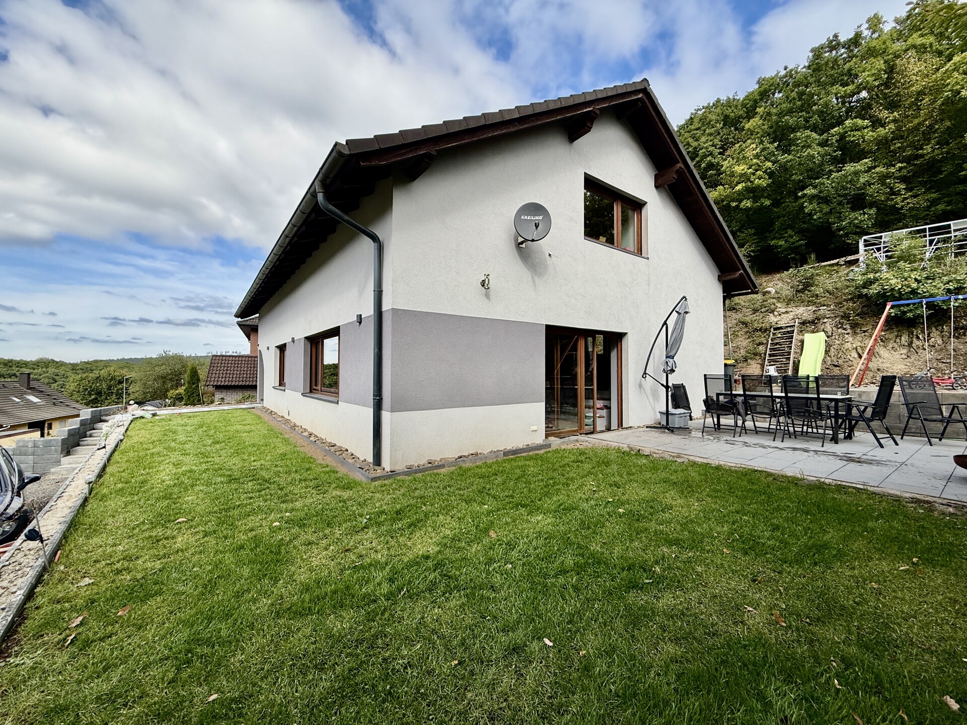 Dieses Einfamilienhaus aus dem Jahr 1988 bietet eine Wohnfläche von ca. 150 m² und wurde im Jahr 2021 umfassend modernisiert. Durch die Renovierungen präsentiert sich die Immobilie in einem gepflegten und zeitgemäßen Zustand und eignet sich ideal für Familien, die ein sofort bezugsfertiges Zuhause suchen. Das Haus verfügt über ein großzügiges Wohnzimmer mit direktem Zugang zur Terrasse, ein Schlafzimmer, zwei Kinderzimmer, die auch als Gästezimmer oder Homeoffice genutzt werden können, sowie zwei moderne Badezimmer. Der Grundriss ist gut geschnitten und sorgt für helle, freundliche Räume. Besondere Ausstattungsmerkmale sind die neue Pelletheizung aus dem Jahr 2021, die ebenfalls 2021 erneuerte Fassadendämmung sowie die im selben Jahr durchgeführte Innenrenovierung. Die Kombination aus solider Bausubstanz und moderner Ausstattung sorgt für ein energieeffizientes und komfortables Wohnerlebnis. Die Terrasse, die direkt vom Wohnzimmer aus erreichbar ist, bietet zusätzlichen Raum für Erholung und gesellige Stunden im Freien.Ausstattung