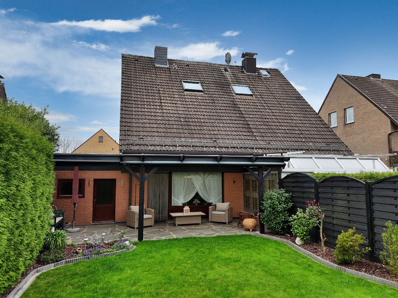 Schön gelegene, klassische Doppelhaushälfte in ruhiger Lage im dörflichen Ortskern von Kaarst-Linning. Das 1972 in konventioneller Bauweise fertiggestellte Haus bietet genügend Platz für zwei Personen und auch noch für Büro und/oder Gäste. Wem eine normale Etagenwohnung nicht genügend Unabhängigkeit und Individualität bietet, sollte dieses sehr gepflegte Objekt ernsthaft in Erwägung ziehen. Auf dem ca. 302m² großen Grundstück haben Sie genug Freiraum und noch Platz für Haustiere, Gemüsebeet o.ä. Das Objekt ist top gepflegt und wurde 2011 grundlegend modernisiert, böse Überraschungen haben Sie hier nicht zu erwarten. Eine große Garage mit weiteren Stellplätzen in der Einfahrt befindet sich direkt am Haus. Ein weiteres Highlight sind die vielen Nutzflächen wie z.B. die ausgebaute Fläche (ca. 21m²) im Spitzboden ideal für Home-Office, Büro, Gäste etc. sowie der große Kellerbereich (ca. 50m²) für Hobby, Fitness, Werkstatt und die große 7.5m tiefe Garage mit Sektionaltor etc.Ausstattung