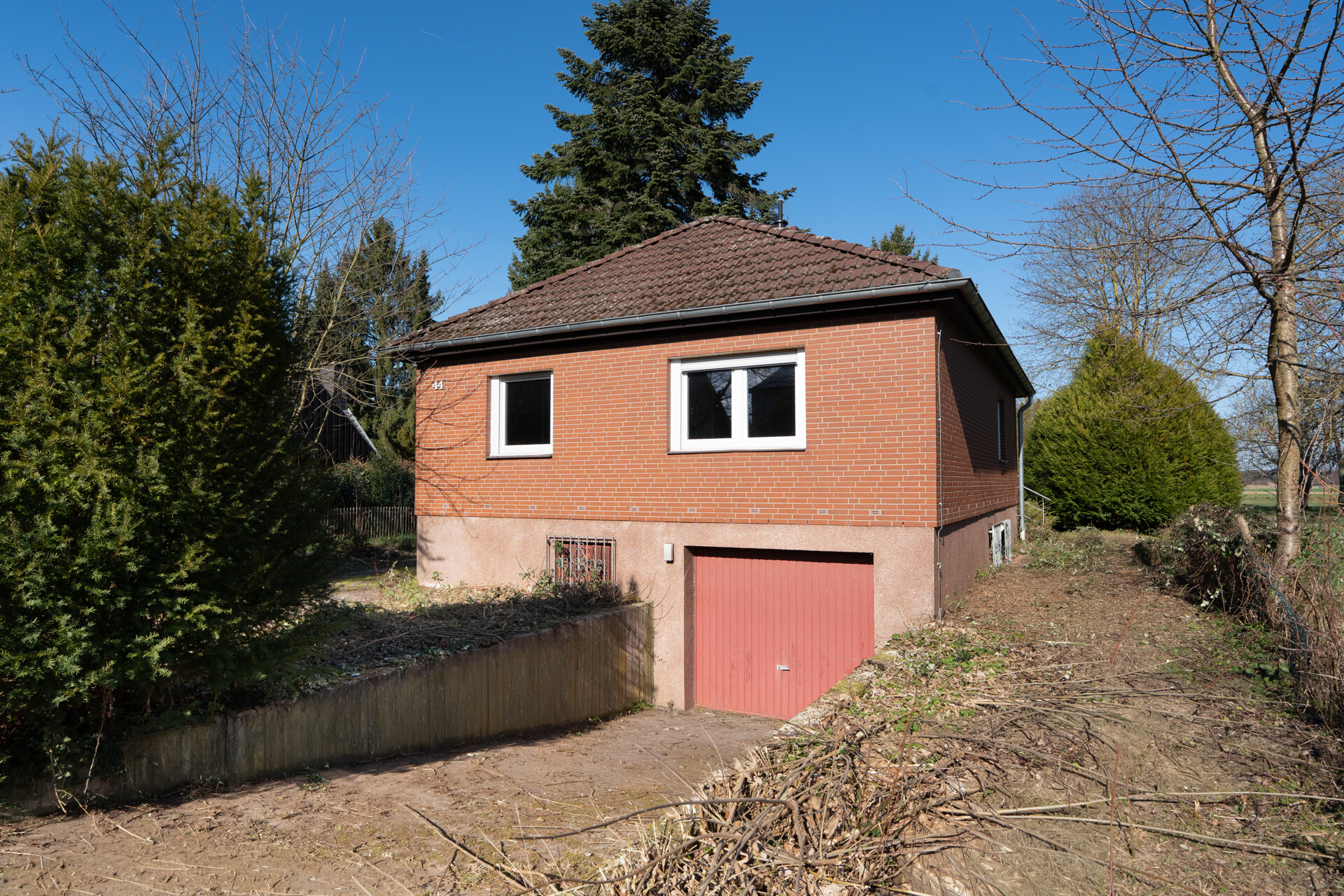 – Traumhaftes Grundstück mit direktem Zugang zur Spazierwegen – Garage mit Zugang ins Haus – Zwei Badezimmer – Großzügiger Wohn-/ Essbereich – Das Grundstück ist vollständig eingezäunt – Der Wald ist nur wenige Gehminuten entferntLage