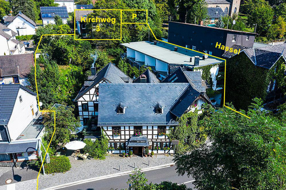 Im Herzen von Hamm/Sieg liegt dieses wunderschöne Romantikhotel. Das heutige Hotel ist das Geburtshaus von Friedrich Wilhelm Raiffeisen, dem Gründer des Genossenschaftswesens sowie dem Urvater der heutigen Raiffeisenbanken! Das familiengeführte Anwesen ist in den vergangenen Jahren stetig modernisiert worden. Die Eigentümer haben das original Fachwerk (Denkmalschutz) über die Jahre stetig gepflegt. Insgesamt verfügt das Objekt über 16 großzügige Gästezimmer (incl. 2 Wellness-Doppelzimmern mit Sauna/Infrarotsauna). Außerdem über einen Restaurantbetrieb (ca. 96 Sitzplätze) – unterteilt in fünf Stuben, eine Kegelbahn, einen Gewölbekeller & einen Biergarten. Die Gäste genießen die hervorragende regionale Küche und profitieren von saisonalen Angeboten. Die großzügige Eigentümerwohnung im Obergeschoss kann selbst genutzt oder Ihren Angestellten zur Verfügung gestellt werden. Der urige Gewölbekeller (Bruchstein) mit ca. 18 Sitzplätzen lädt Ihre Gäste zum Verweilen und Feiern ein. Neben dem Biergarten befindet sich der eigene Hotelgarten mit Streuobstwiese und Kräutergarten. Das direkt angrenzende, voll vermietete Wohnhaus „Kirchweg 3“ kann vom selben Eigentümer ebenfalls erworben werden und zusammen mit den Erweiterungsmöglichkeiten am Hotel selbst ist eine Vergrößerung auf ca. 50 Doppelzimmer möglich. Durch die Möglichkeit der Sonderabschreibung von 100 % über 12 Jahre für alle Renovierungs- und Erweiterungsmaßnahmen ergeben sich weitere Vorteile.Ausstattung