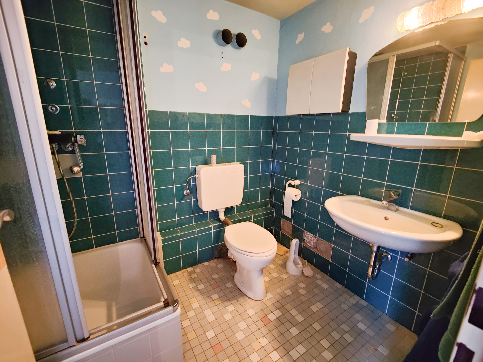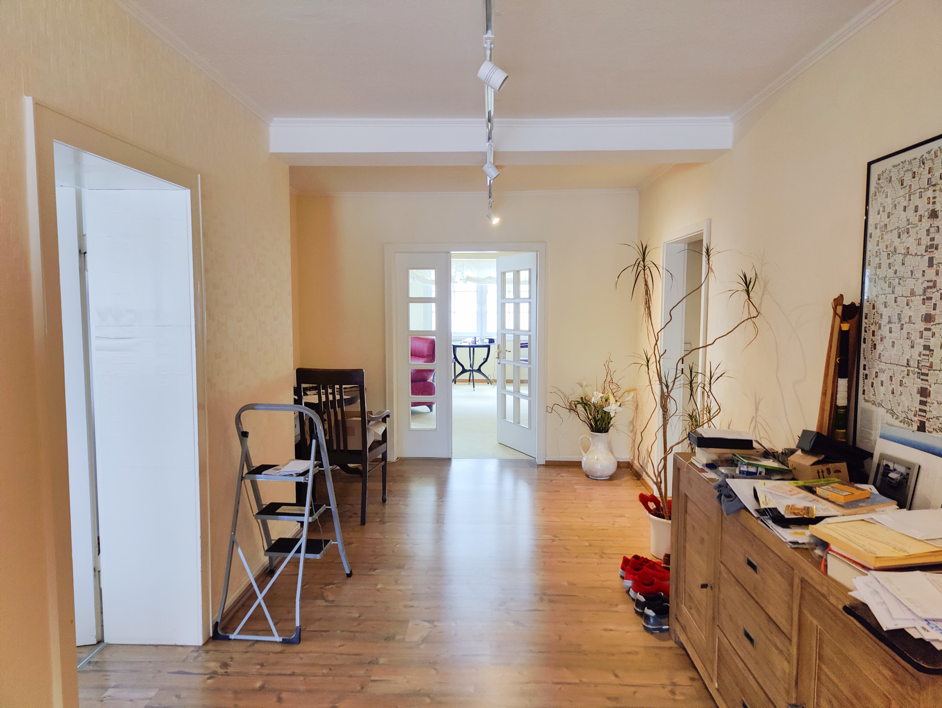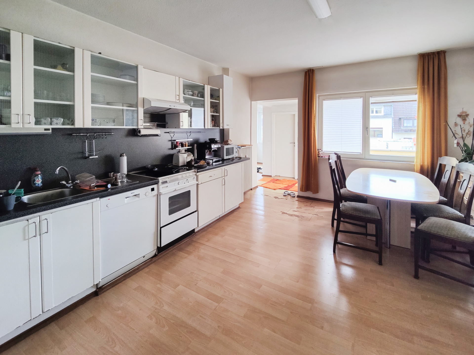Bei der angebotenen Immobilie handelt es sich um ein massiv errichtetes Wohn- und Geschäftshaus in der Fußgängerzone von Altenkirchen, welches nach dem 2. Weltkrieg in 2 Phasen auf dem ursprünglichen Keller wiederaufgebaut wurde. Der ältere Teil stammt aus der Zeit von 1946/1948; der neuere aus den 1960er Jahren. Dem Gebäude sind 2 Hausnummern zugeordnet. Im Erdgeschoss befindet sich ein großer Laden, der auch Teile des 1. Obergeschosses umfasst. Dieser ist zurzeit an die Caritas vermietet und hat eine Fläche von ca. 318 m². Im 1. Obergeschoss befindet sich außerdem eine vermietete Wohnung mit einer Fläche von ca. 132 m². Diese verfügt über 4 Zimmer und eine große Terrasse. Im 2. Obergeschoss wohnt derzeit der Eigentümer auf ca. 208 m². Ggf. könnte hier auch eine Aufteilung in 2 Wohnungen erfolgen. Das Dachgeschoss wurde z.T. schon ausgebaut (4 Zimmer+Bad+Balkon) und steht derzeit leer. Diese Fläche wurde nicht in der Wohnfläche berücksichtigt!Ausstattung