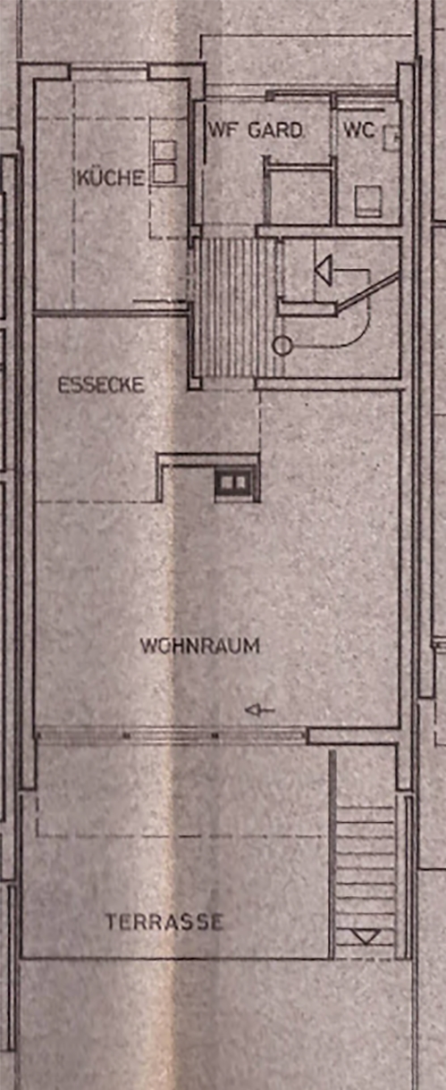Willkommen in Ihrem zukünftigen Zuhause einem charmanten, stark renovierungsbedürftigen Mittelhaus aus dem Jahr 1978, das auf eine liebevolle Auffrischung wartet! Mit einer großzügigen Wohnfläche von 110 m² verteilt auf zwei Geschosse bietet dieses Haus genügend Platz für die ganze Familie. Im Erdgeschoss betreten Sie zunächst die einladende Küche, dem offenen Essbereich der nahtlos in das lichtdurchflutete Wohnzimmer übergeht. Hier sorgt ein romantischer Kamin für wohlige Wärme und eine gemütliche Atmosphäre an kalten Winterabenden. Von hier aus gelangen Sie direkt auf die großzügige Terrasse und in den anschließenden Garten der perfekte Ort, um die warmen Sonnenstrahlen zu genießen oder unvergessliche Grillabende mit Freunden und Familie zu verbringen. Der Garten hat einen hinteren Zugang. Ein praktisches Gäste-WC rundet das Erdgeschoss ab und sorgt für zusätzlichen Komfort. Im Obergeschoss erwarten Sie drei helle Schlafzimmer, die Ihnen und Ihrer Familie ausreichend Rückzugsmöglichkeiten bieten. Jedes Zimmer hat das Potenzial, zu einem persönlichen Rückzugsort zu werden sei es als Kinderzimmer, Arbeitszimmer oder Gästezimmer. Das Badezimmer im Obergeschoss ist mit einem Fenster ausgestattet, das für frische Luft sorgt, während ein zusätzlicher Abstellraum für Stauraum sorgt. Der Keller mit direktem Zugang zum Garten bietet nicht nur Platz für Ihre Gartengeräte, sondern könnte auch in eine kreative Werkstatt oder einen Hobbyraum verwandelt werden. Eine Garage und ein Stellplatz runden das Angebot ab und sorgen für ausreichend Parkmöglichkeiten. Dieses Haus ist ein echtes Potenzial, das darauf wartet, in neuem Glanz erstrahlt zu werden. Lassen Sie Ihrer Kreativität freien Lauf und gestalten Sie Ihr neues Zuhause ganz nach Ihren Wünschen!Lage