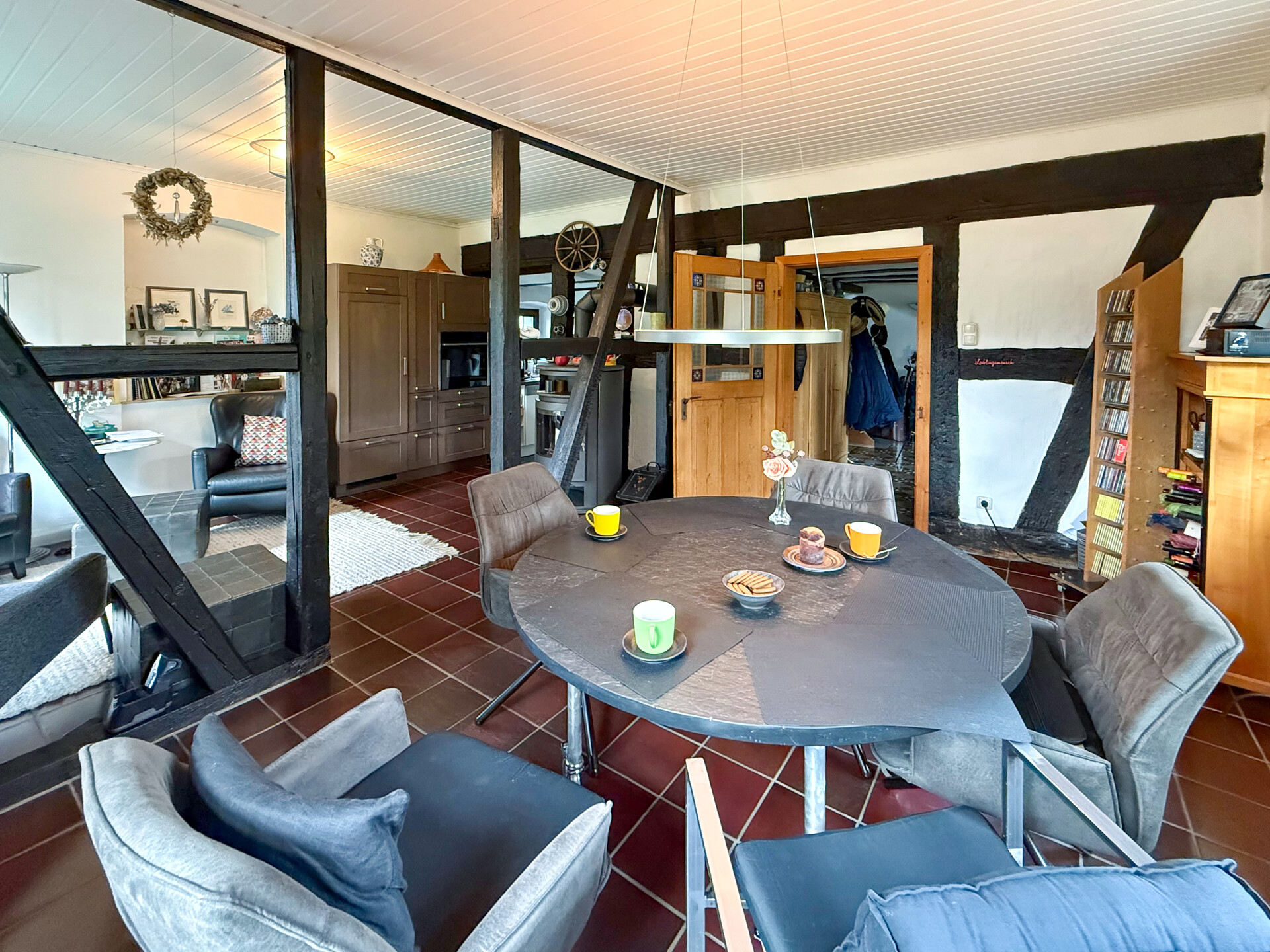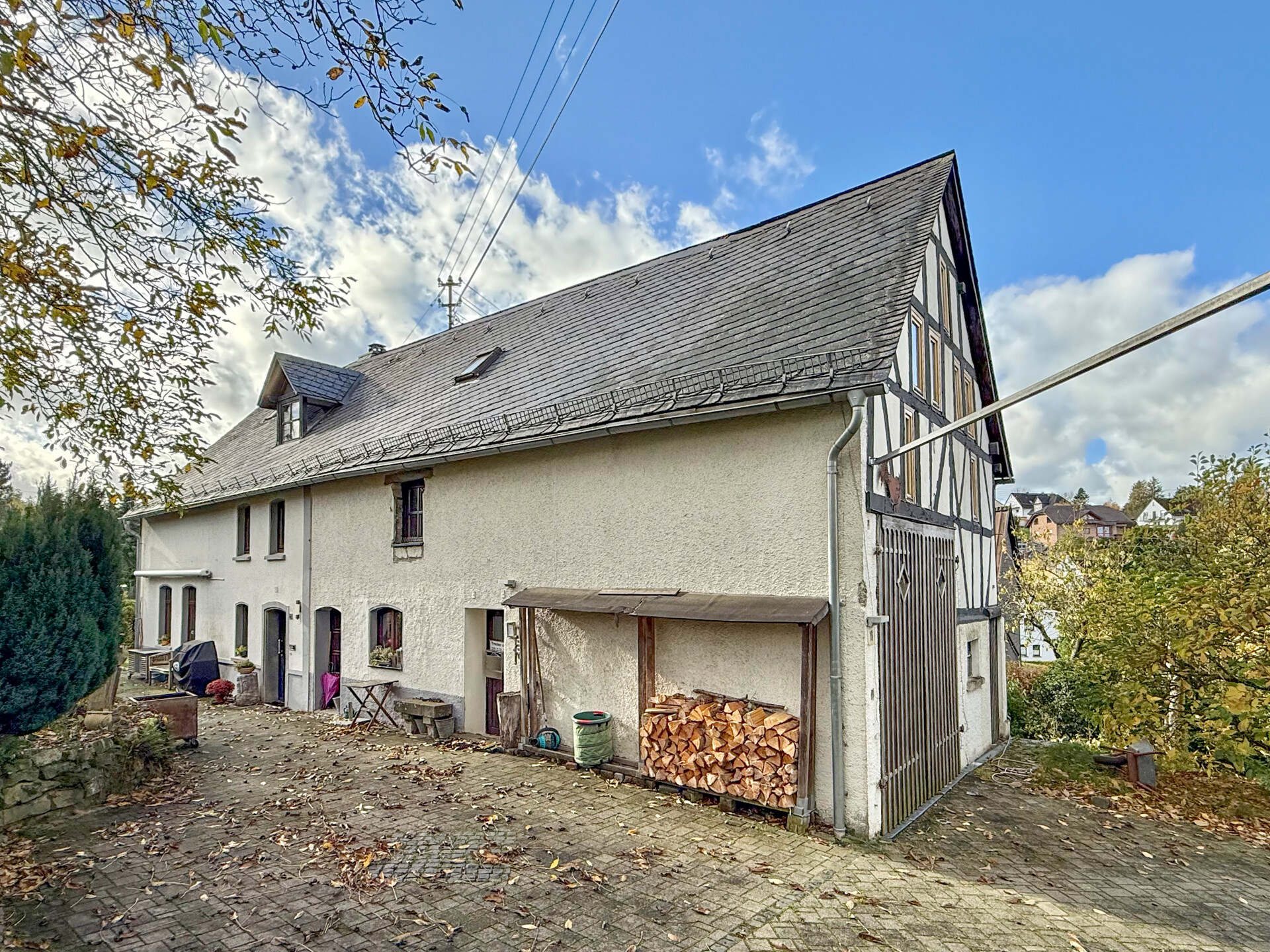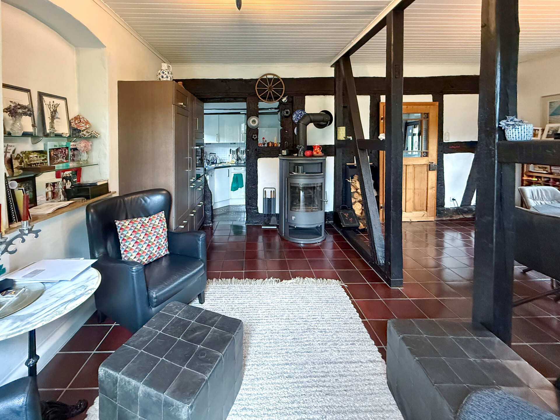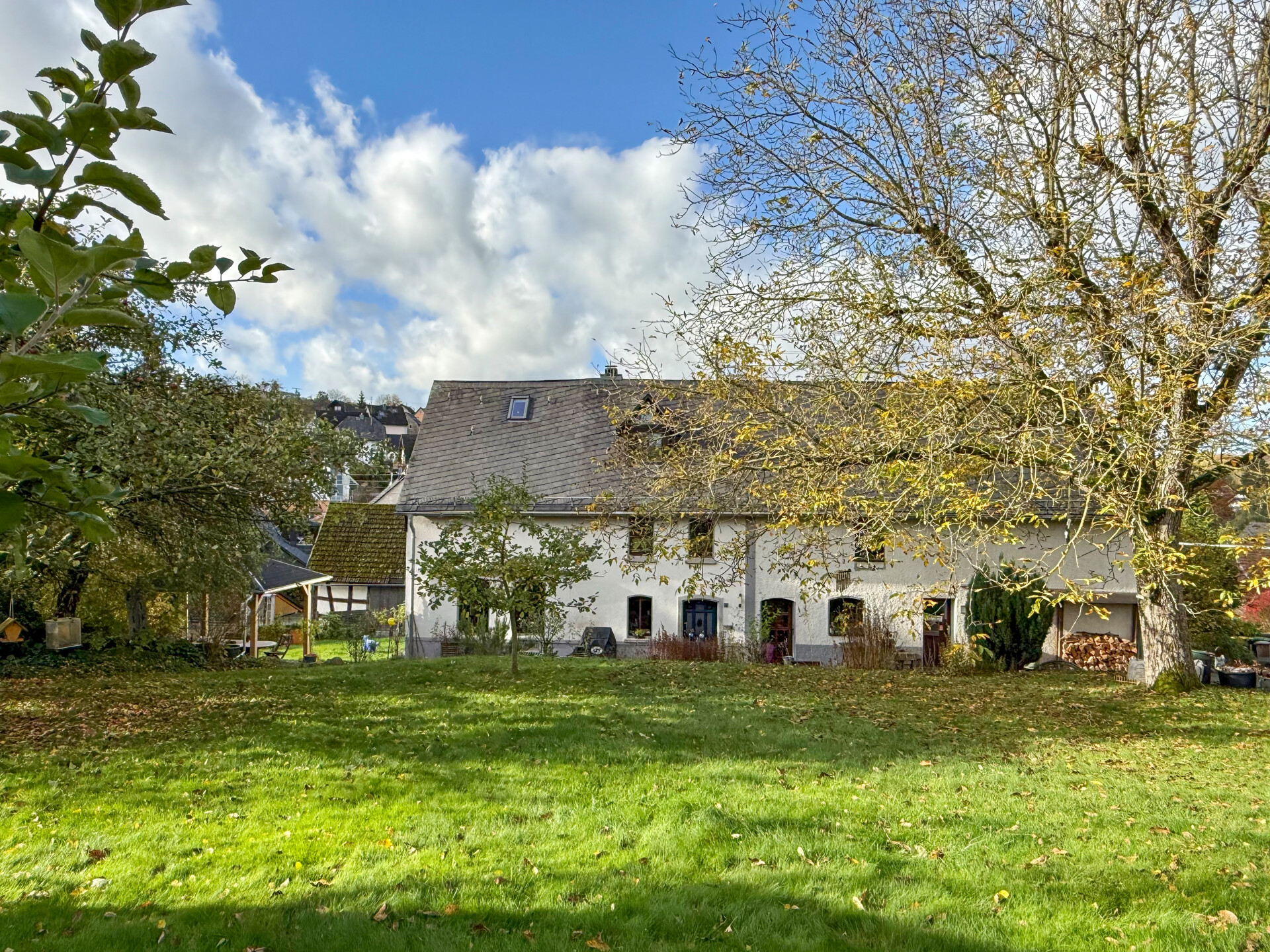 Dieses liebevoll modernisierte, ehemalige Fachwerkhaus mit Ursprung um 1800 vereint historischen Charme mit modernstem Wohnkomfort. Auf einem Grundstück von rd. 1.403 m² präsentiert sich das Anwesen – nach stetigen Sanierungen und Renovierungen von 1981 bis heute – in einem sehr guten Zustand! Im Erdgeschoss ist das Wohnen nahezu altersgerecht möglich: Neben dem gemütlichen Wohn-/Essbereich stehen eine hochwertig ausgestattete Küche, ein Wannenbad sowie ein Schlafzimmer oder Büro zur Verfügung. Im ersten Obergeschoss erwarten Sie ein eindrucksvolles Schlafzimmer mit Galerie, ein Kinderzimmer oder eine Ankleide, ein sep. WC sowie ein Wellness-/Saunaraum – perfekt für entspannte Stunden. Ein weiteres Zimmer befindet sich im Dachgeschoss. Insgesamt verfügt das Haupthaus über rd. 174 m² Wohnfläche. Ergänzt wird das Angebot durch vielfältige Nebennutzungen: Im Erdgeschoss der Scheune befinden sich Werkstatt, Heizung/Waschküche und ein Nebenraum, im Obergeschoss ein großzügiger Hobbyraum. Drei Kellerräume bieten zusätzlichen Stauraum. Zum Anwesen gehören außerdem ein Doppelcarport mit Wallbox und Abstellraum, ein Pavillon sowie das wunderschön angelegte Gartengrundstück – ein echtes Refugium, für alle, die Qualität und Gemütlichkeit schätzen!Ausstattung
