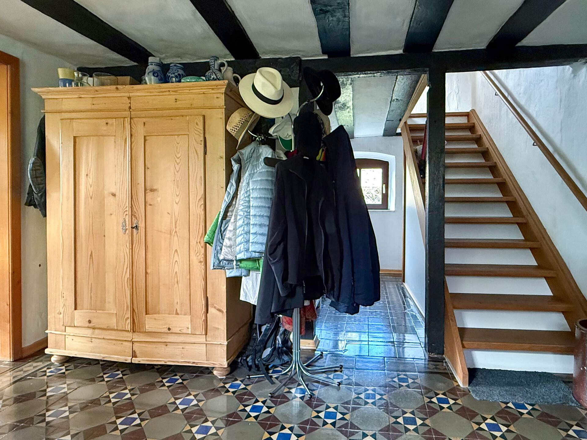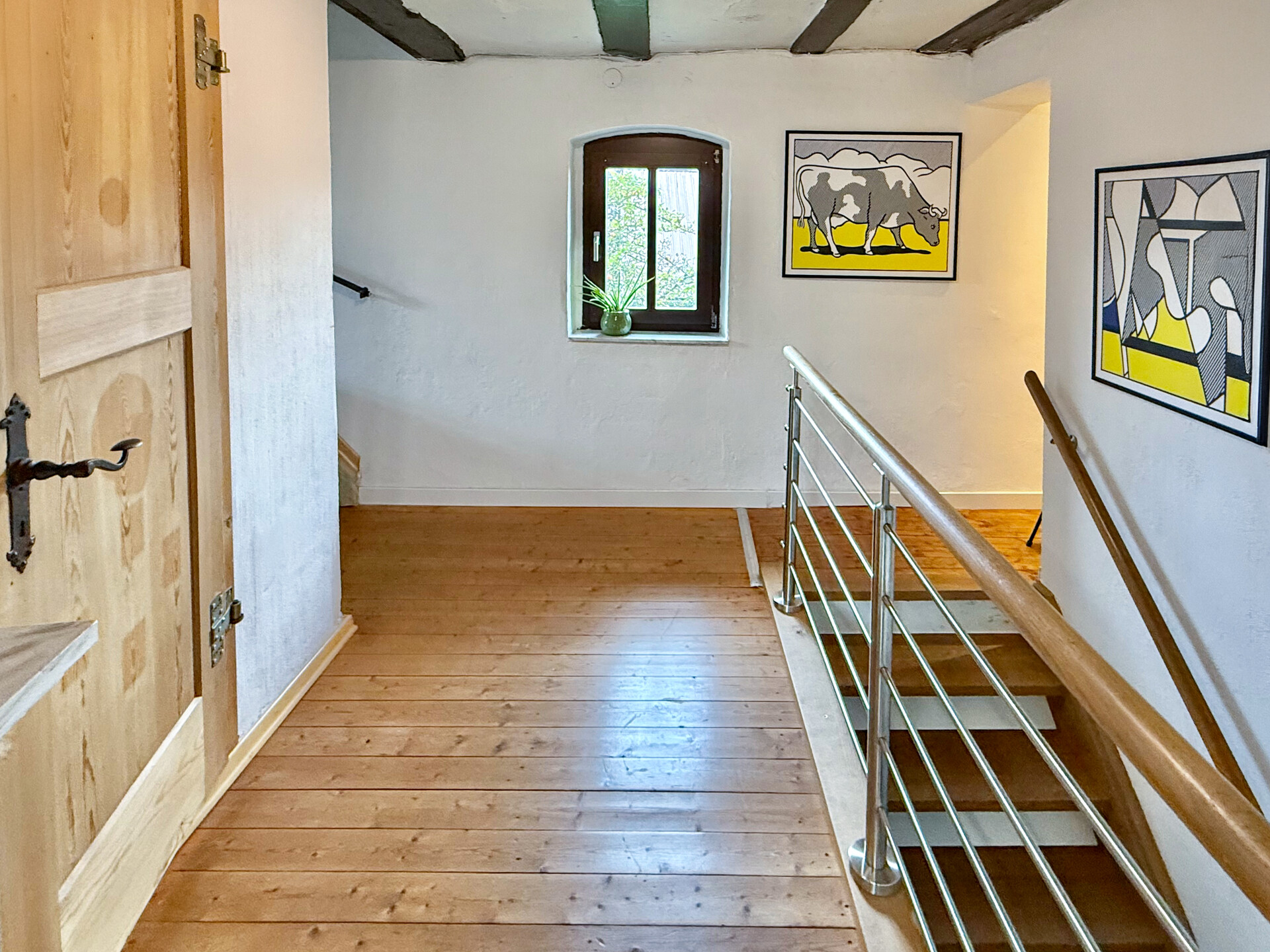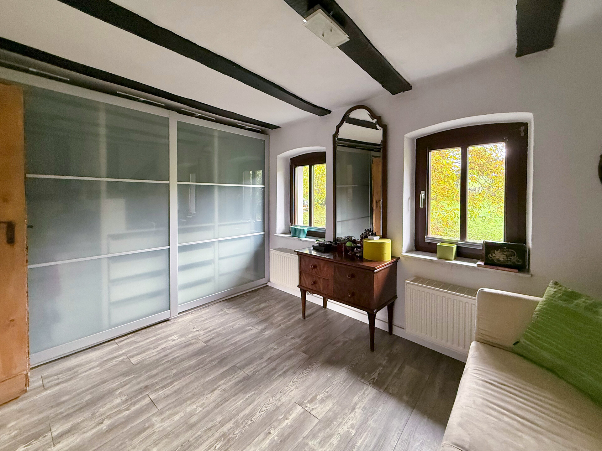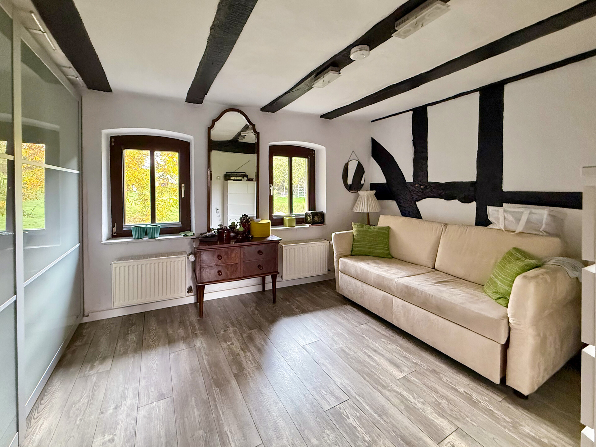 Dieses liebevoll modernisierte, ehemalige Fachwerkhaus mit Ursprung um 1800 vereint historischen Charme mit modernstem Wohnkomfort. Auf einem Grundstück von rd. 1.403 m² präsentiert sich das Anwesen – nach stetigen Sanierungen und Renovierungen von 1981 bis heute – in einem sehr guten Zustand! Im Erdgeschoss ist das Wohnen nahezu altersgerecht möglich: Neben dem gemütlichen Wohn-/Essbereich stehen eine hochwertig ausgestattete Küche, ein Wannenbad sowie ein Schlafzimmer oder Büro zur Verfügung. Im ersten Obergeschoss erwarten Sie ein eindrucksvolles Schlafzimmer mit Galerie, ein Kinderzimmer oder eine Ankleide, ein sep. WC sowie ein Wellness-/Saunaraum – perfekt für entspannte Stunden. Ein weiteres Zimmer befindet sich im Dachgeschoss. Insgesamt verfügt das Haupthaus über rd. 174 m² Wohnfläche. Ergänzt wird das Angebot durch vielfältige Nebennutzungen: Im Erdgeschoss der Scheune befinden sich Werkstatt, Heizung/Waschküche und ein Nebenraum, im Obergeschoss ein großzügiger Hobbyraum. Drei Kellerräume bieten zusätzlichen Stauraum. Zum Anwesen gehören außerdem ein Doppelcarport mit Wallbox und Abstellraum, ein Pavillon sowie das wunderschön angelegte Gartengrundstück – ein echtes Refugium, für alle, die Qualität und Gemütlichkeit schätzen!Ausstattung