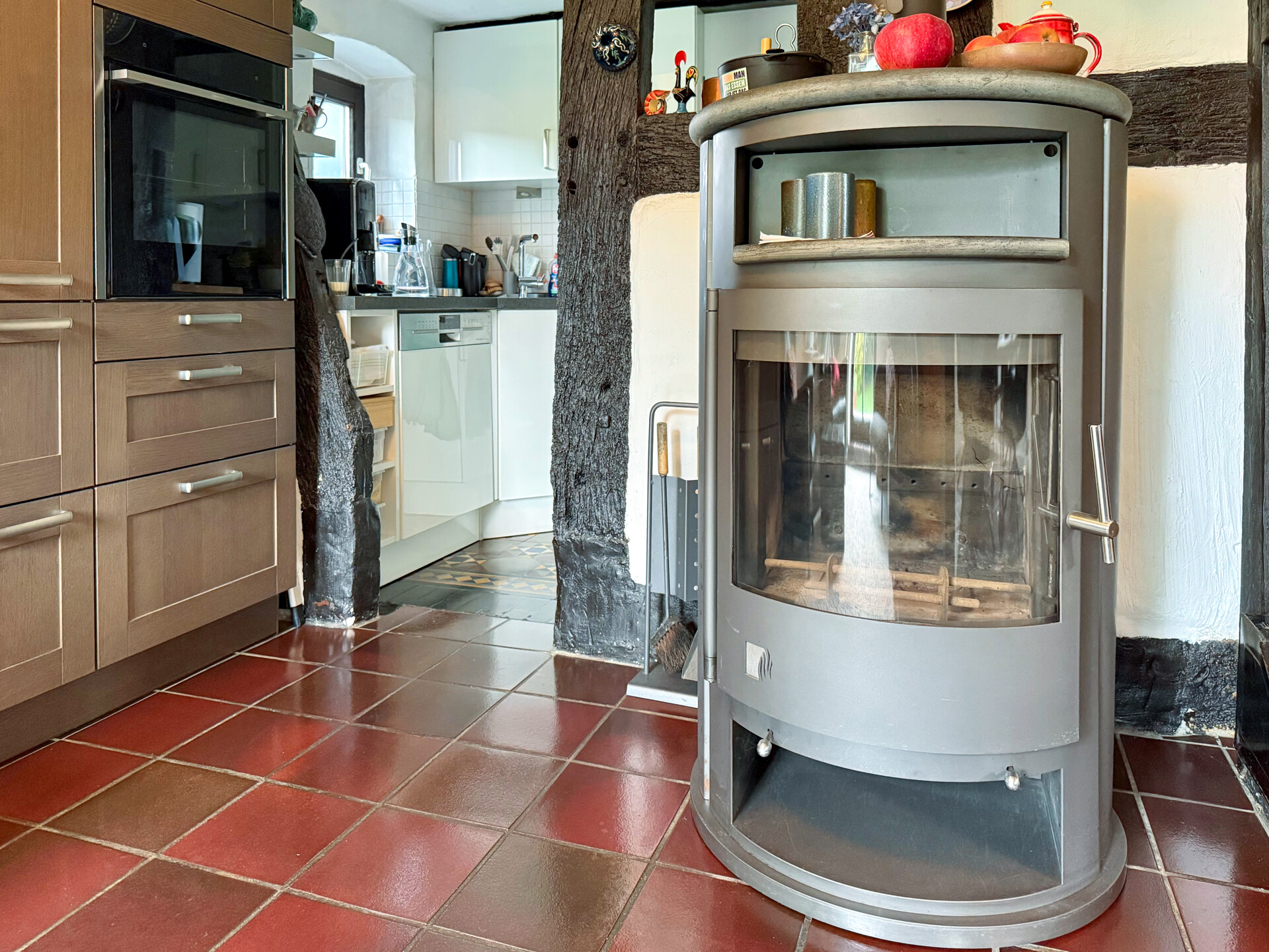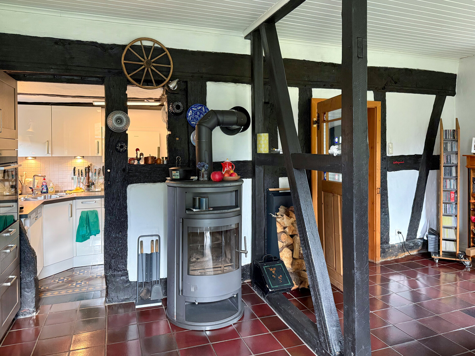 Beheizung: Gas Brennwerttherme 2014 mit 750 Liter Pufferspeicher und Einbindung des wasserführender Kaminofens (Drooff 2010) + Solar mit Anbindung in Pufferspeicher (2022) + Balkonkraftwerk Photovoltaikanlage 3,5 kWp (2006) Fenster: Thermoplane/ Isolierverglaste Holzfenster (1999) mit weißen Marmor Fensterbänken Böden: Fliesen, Dielen Dach: Satteldach (Naturschiefer 2007) Garten mit Terrasse 2 Carportstellplätze Wallbox für Elektroauto (2020) Scheune mit Werkstatt und HobbyräumenLage