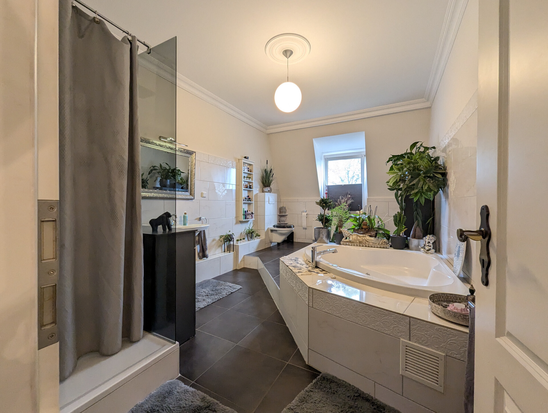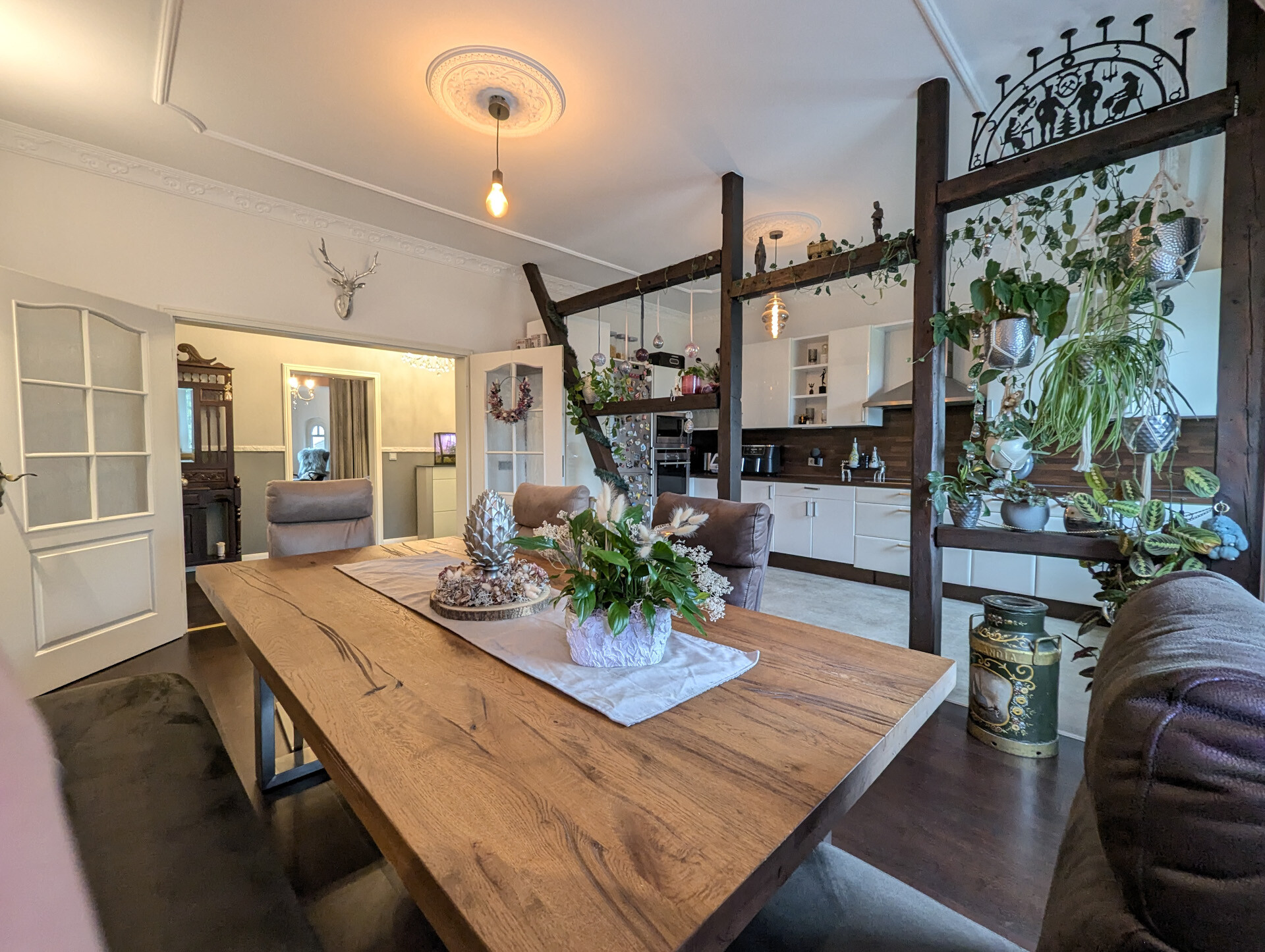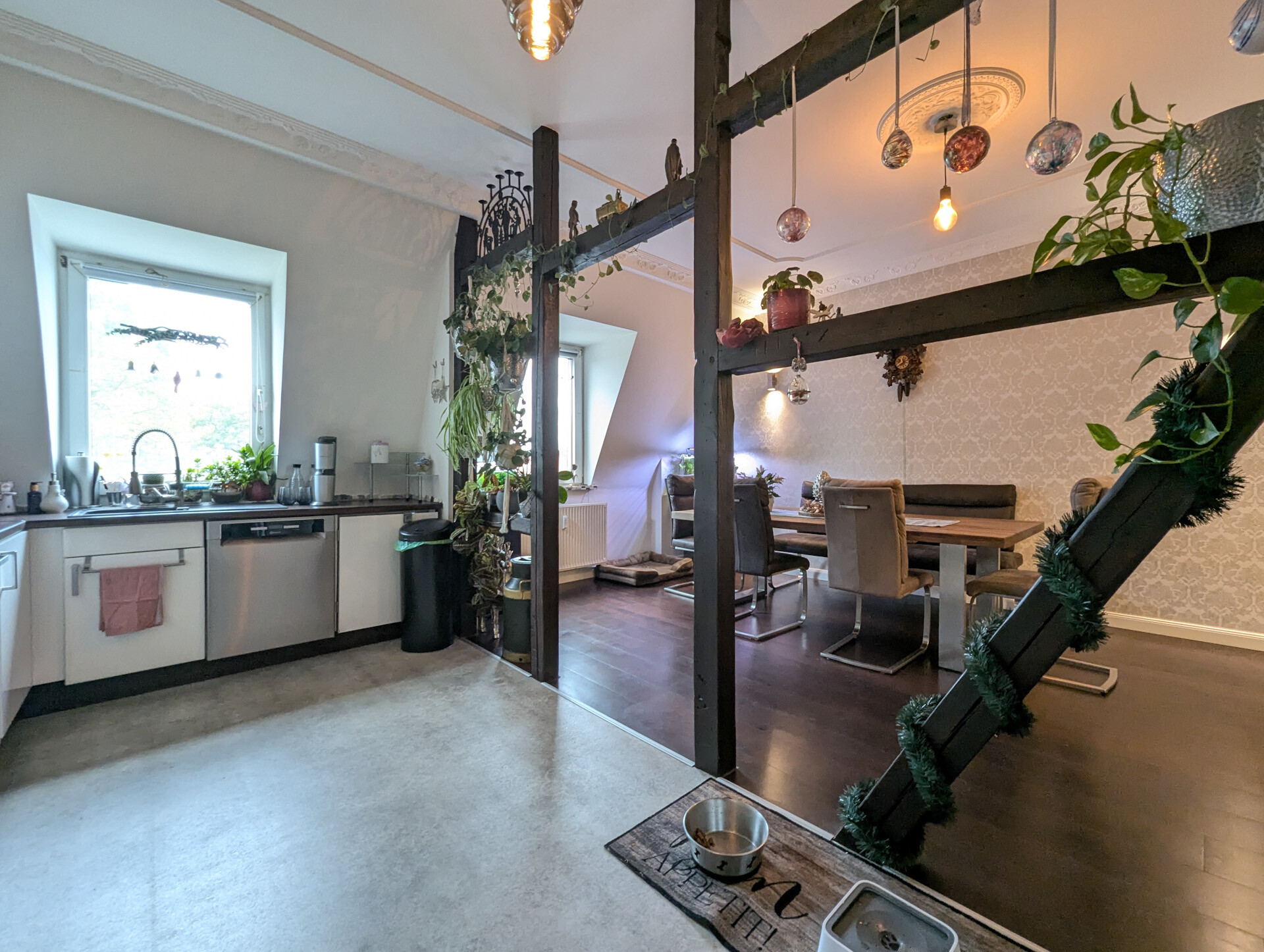 Willkommen in Ihrer neuen Dachgeschosswohnung im Herzen von Duisburg-Meiderich. Diese großzügig geschnittene Wohnung befindet sich in einem prächtigen Gebäude aus der Gründerzeit und bietet eine einzigartige Kombination aus historischem Charme und modernem Komfort. Betreten Sie die Wohnung und lassen Sie sich von den hohen Decken und den sichtbaren Balken im Essbereich beeindrucken, die dem Raum eine besondere Atmosphäre verleihen. Die Fenster mit teils Jugendstilformen sorgen für ein stilvolles Ambiente und lassen viel Tageslicht herein, das die Räume angenehm erhellt. Sie haben eine große Wohn-Küche; ein separates Wohnzimmer; zwei Schlafzimmer und einen Abstellraum. Das geräumige Badezimmer mit Badewanne (zusätzliche Whirlpool Funktion)und Dusche bietet Ihnen ausreichend Platz und Komfort, um Ihren Alltag angenehm zu gestalten. Diese Wohnung verbindet historische Elemente mit modernen Annehmlichkeiten und schafft so ein Wohngefühl der besonderen Art. Diese Immobilie befindet sich in zentraler Lage von Duisburg-Meiderich, die Ihnen eine hervorragende Anbindung an lokale Geschäfte, Cafés und öffentliche Verkehrsmittel bietet. Erleben Sie urbanes Wohnen in einem sehr charmanten 7-Familienhaus. Zögern Sie nicht, diese außergewöhnliche Wohnung zu besichtigen und sich selbst von ihrem einzigartigen Charakter zu überzeugen. Wir freuen uns darauf, Ihnen bei weiteren Fragen zur Verfügung zu stehen.Ausstattung