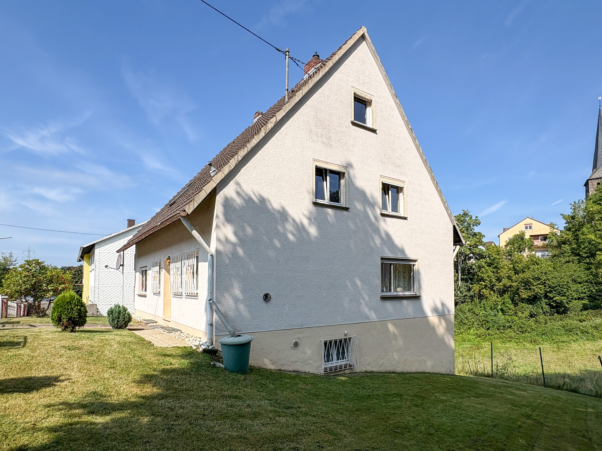 Diese Immobilie bietet eine hervorragende Gelegenheit für Eigennutzer und Kapitalanleger. Das Zweifamilienhaus ist bereits teilweise vermietet: Im Erdgeschoss befindet sich eine vermietete Wohneinheit (KM 300,-/mtl.) mit einem langjährigen (seit 35 Jahren) und zuverlässigen Mieter – ein solides Fundament für regelmäßige und zuverlässige Mieteinnahmen. Die Wohnung im Dachgeschoss steht derzeit leer und weist noch Fertigstellungsbedarf in allen Räumen auf. Nach entsprechender Renovierung lässt sich auch diese Einheit problemlos vermieten oder Sie nutzen diese Einheit selbst. In den wichtigsten Bereichen wurde bereits teilweise modernisiert: Die Dachdämmung, die Elektro-Unterverteilung (Wohnung DG) sowie die Öl-Zentralheizung wurden erneuert – ein großer Vorteil hinsichtlich energetischer Standards und zukünftiger Investitionen. Bei vollständiger Vermietung und marktgerechter Anpassung der Mieten ist eine Jahresnettokaltmiete von ca. 10.440 € (zzgl. Garage) für das komplette Wohnhaus realistisch erzielbar. Das großzügige Wiesengrundstück rundet das Angebot ab – ideal für Gartenliebhaber oder Familien mit Kindern. Die genaue Aufteilung der Immobilie entnehmen Sie bitte unserem ausführlichen Exposé.Ausstattung