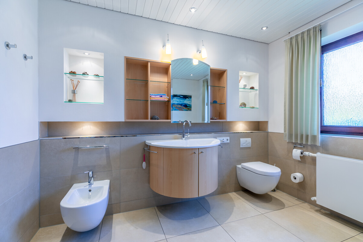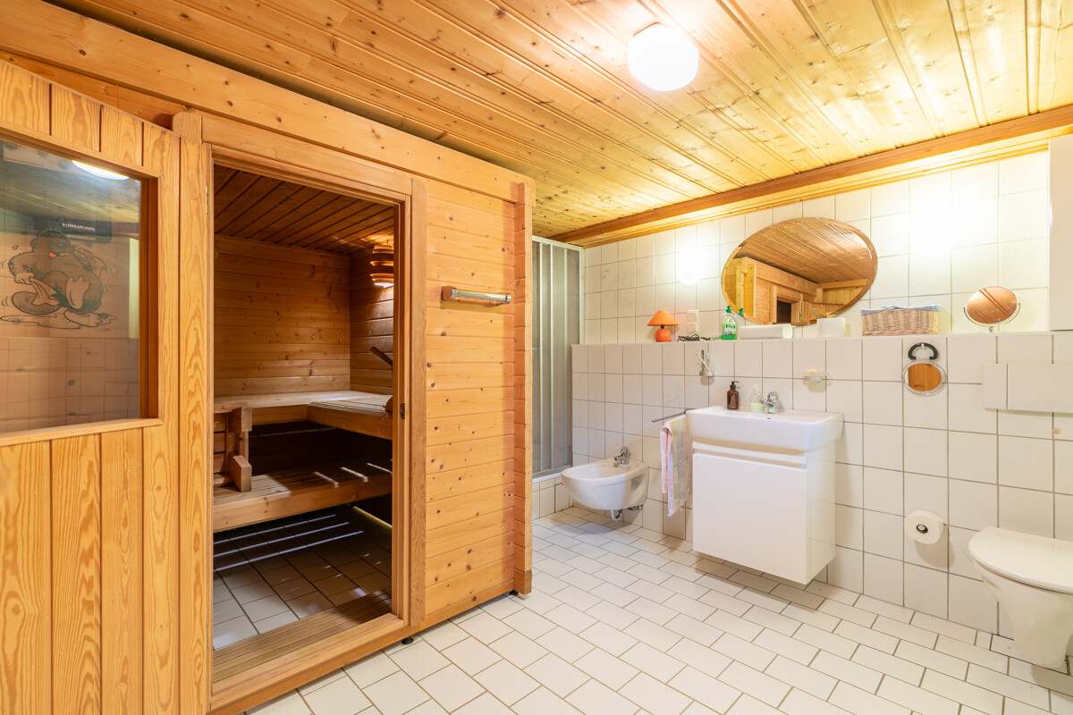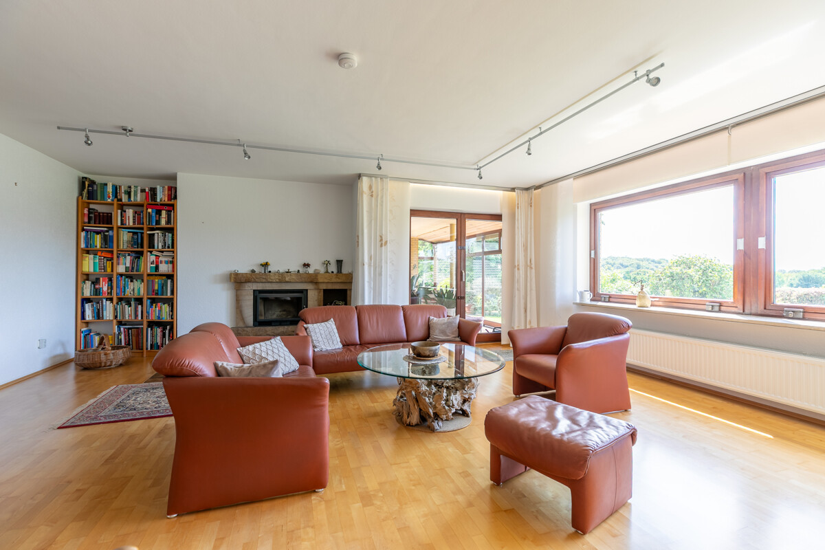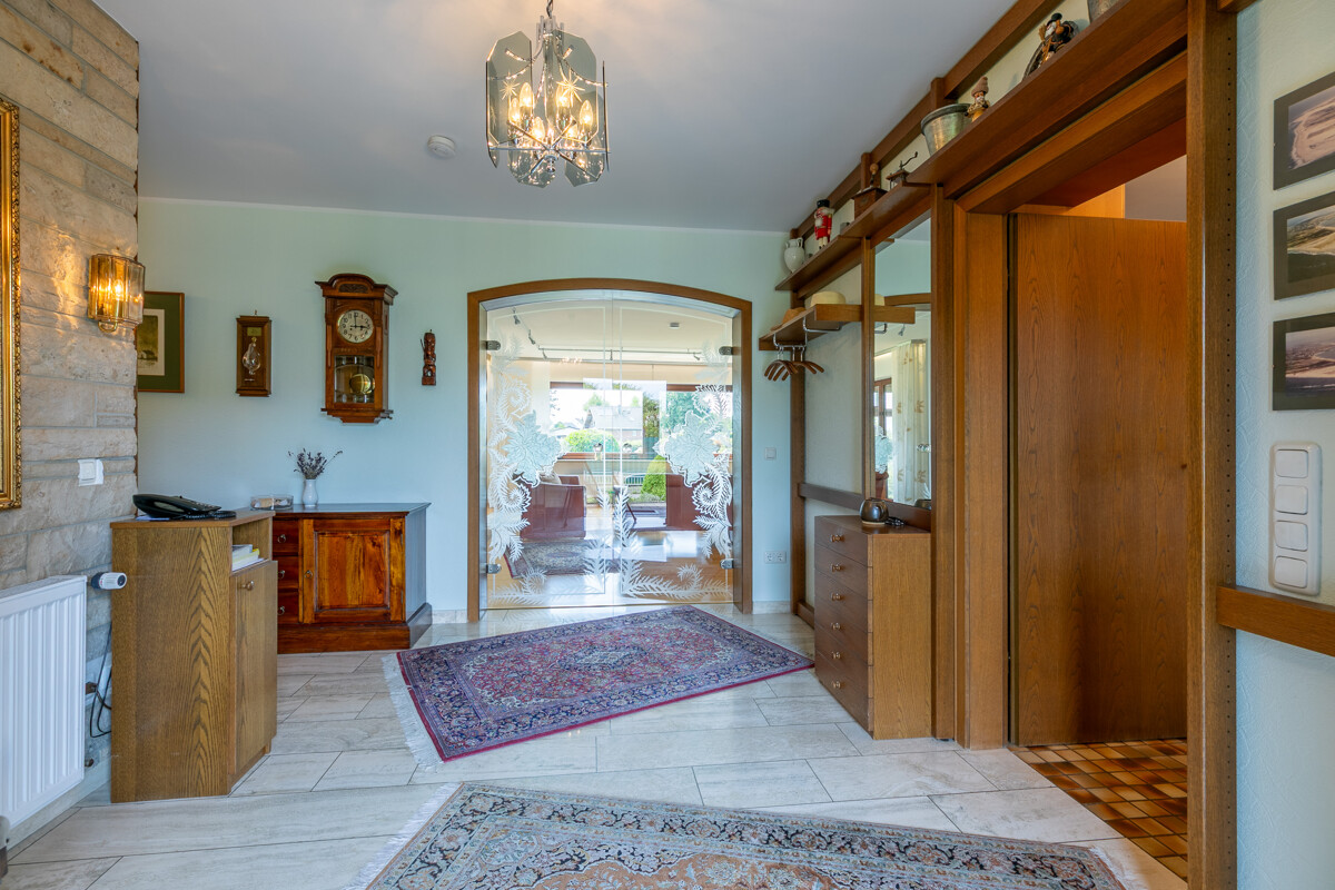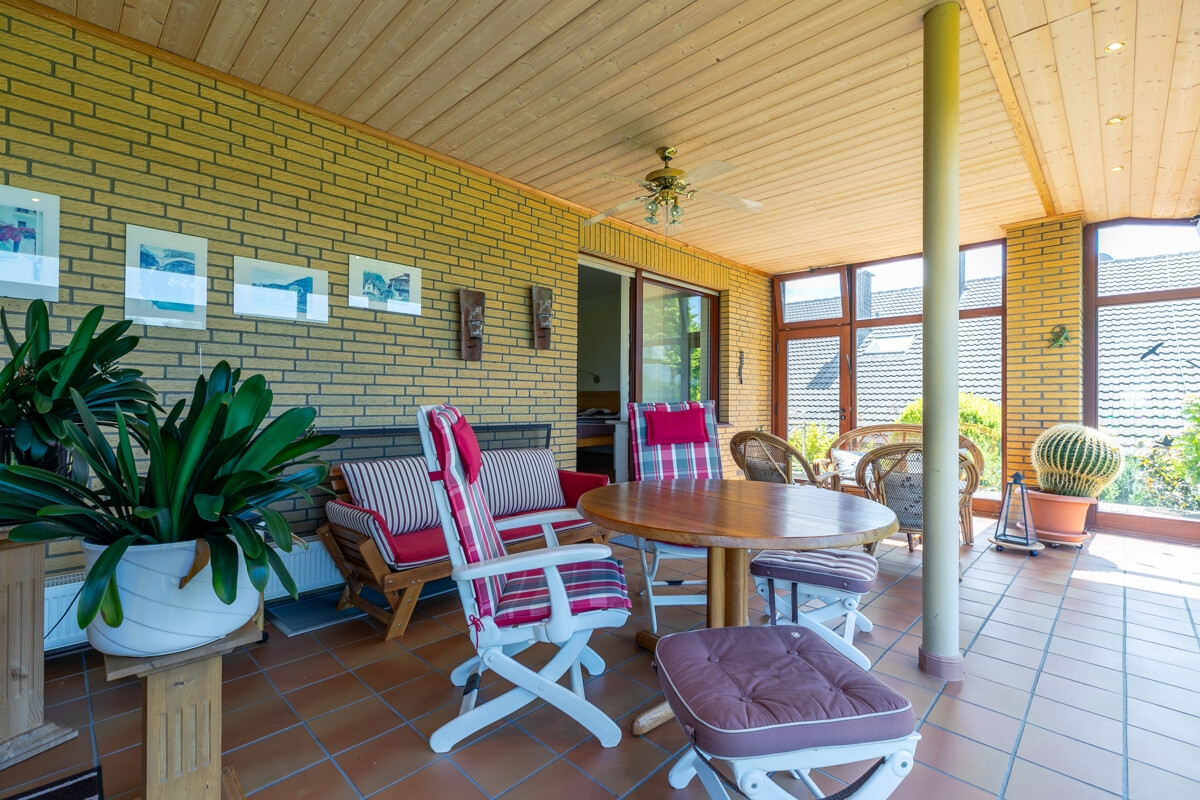 – Gas-Zentralheizung (Bj.1994) – Photovoltaikanlage – Solarthermie für Warmwasseraufbereitung – Weiterer Dachausbau möglich – Einbauküche im KP enthalten – Offener Kamin – Fliesen | Stein | Parkett | Teppichboden – braune Holzfenster mit teilweisen elektrischen Rollläden – braune Holztüren – Wintergarten – hübscher Garten mit Gartenteich – Vollbad | Duschbad mit Sauna – Hobbyraum | Waschküche | Vorratsraum | Kellerraum – Großer Carport | Stellplatz Ein absoluter Traum ist der wunderschön angelegte Garten, der sich mit Worten kaum beschreiben lässt! Mit viel Liebe und Geschmack wurde hier etwas ganz Besonderes geschaffen: Eine Vielzahl von Bäumen, Sträuchern und Blumen sowie ein hübscher Teich laden geradezu zum Verweilen ein. Ob Sonnenbaden, Grillen oder einfach nur Entspannen, hier werden Sie sicher mehr als nur ein Lieblingsplätzchen finden! Bitte sehen Sie sich die 360°-Tour unter https://tour.ogulo.com/vfYm an, bevor Sie mit uns einen Besichtigungstermin vereinbaren!Lage