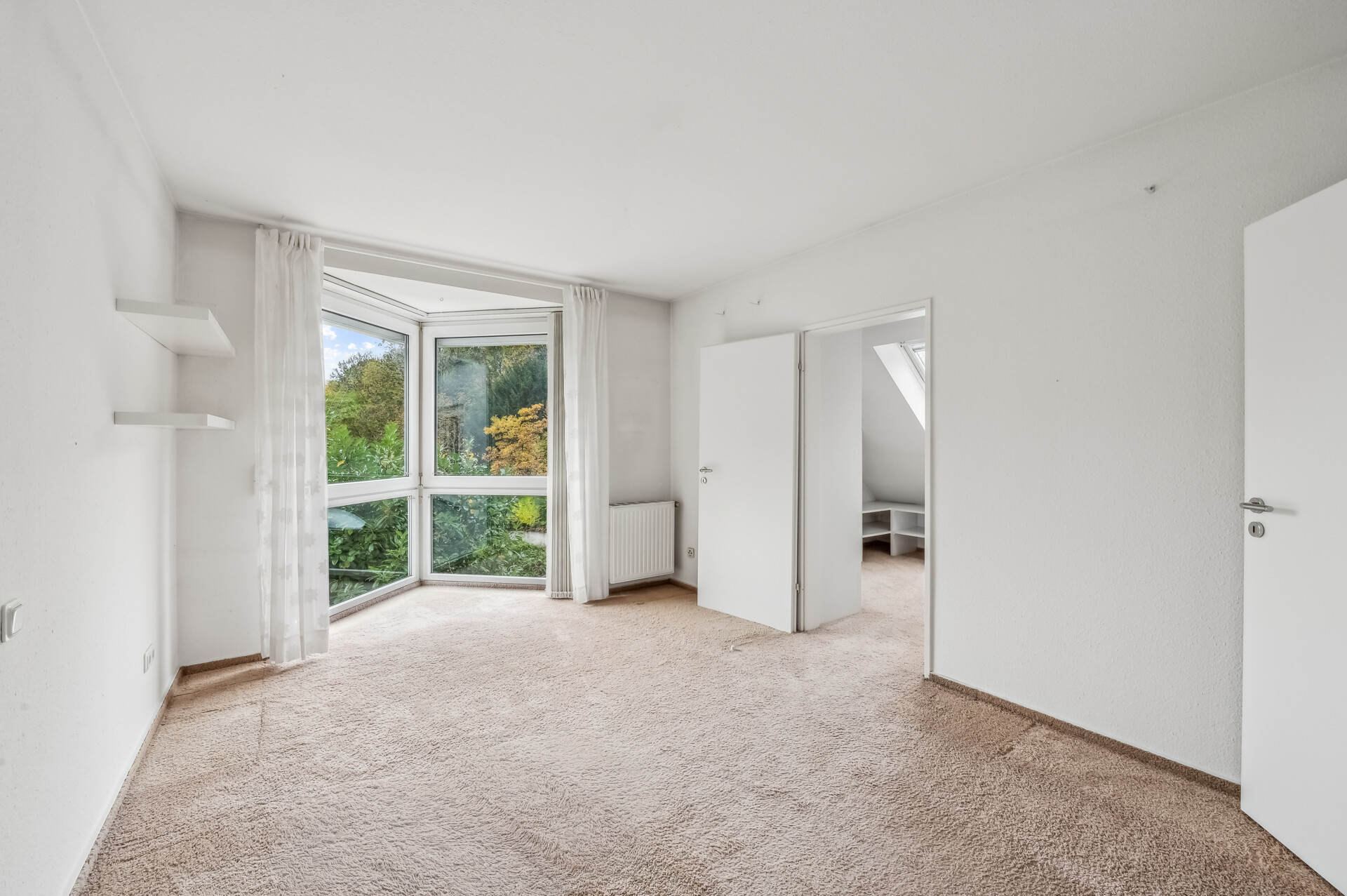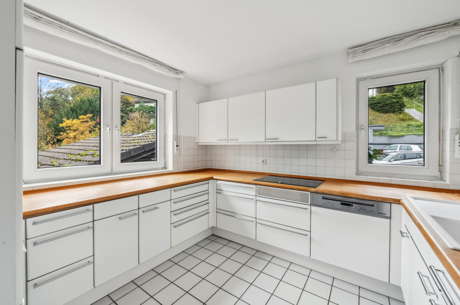 Diese Immobilie bietet eine tolle Raumaufteilung mit Wohnkomfort durch Blick ins Grüne. Schon beim Betreten des Wohnbereichs, welcher über einen großzügigen Flur erreichbar ist, wird man durch bodentiefe Fenster und die angrenzende Terrasse von diesem Blick überzeugt. Der groß geschnittene, offene und helle Wohn- und Essbereich bietet Platz für die ganze Familie. Die angrenzende Küche der Marke Poggenpohl ist zusätzlich mit hochwertigen Elektrogeräten der Marke Neff ausgestattet. Helle Fliesen runden das Gesamtbild im Erdgeschoss ab. Im Dachgeschoss verbindet ein Flur alle weiteren Räume. Dazu zählt auch das große Badezimmer, welches sowohl eine Dusche als auch eine Badewanne bietet. Dieses Badezimmer, und auch das Gäste-WC im Erdgeschoss, sind mit Tageslichtfernstern ausgestattet. Die anderen Räume können beispielsweise als Kinder- und Schlafzimmer genutzt werden. Auf dieser Etage ist außerdem Teppichboden verlegt. Im Untergeschoss befindet sich ein weiterer beheizter Raum mit Teppichboden, welcher problemlos als Büro genutzt werden kann. Im Heizungsraum nebenan befindet sich zudem die Sauna. Die Fenster im gesamten Haus und die Heizung stammen aus dem Baujahr des Hauses (1991). Außerdem ist eine Fußbodenheizung verlegt. Im Dachgeschoss bietet ein Dachspeicher zusätzlichen Stauraum, wobei die Decke für ideale Energieeffizienz gedämmt ist. Das Inventar wird durch ein zusätzliches Entgelt in Höhe von 10.000,00 € als Aufschlag auf den Kaufpreis berechnet. Dazu zählt: – eine Infrarotlichtsauna – Einbauschränke der Marke Interlübke – Einbauküche mit Elektrogeräten u. a. von Marken wie Miele und NeffAusstattung